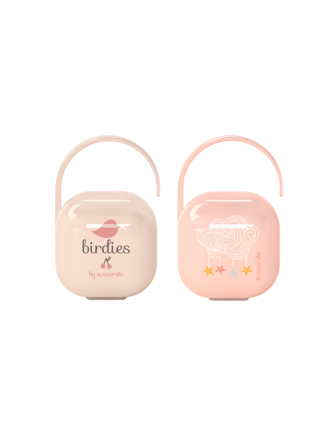SUAVINEX Portachupetes +0 Meses es un accesorio práctico y encantador diseñado para guardar y transportar chupetes de forma higiénica desde el nacimiento, evitando que se pierdan o se ensucien durante paseos, viajes o rutinas diarias. Este portachupetes cuenta con capacidad para 2 chupetes, un asa flexible que permite colgarlo fácilmente del carrito, bolso o cuna, y diseños reversibles como Birdies (pájaros juguetones) y Wild & Free Osito (un osito aventurero), que añaden un toque de estilo unisex y tierno a la maternidad. Ideal para padres que buscan organización sin complicaciones, este producto mantiene los chupetes limpios y a mano, facilitando el cambio rápido en momentos de calma o necesidad.