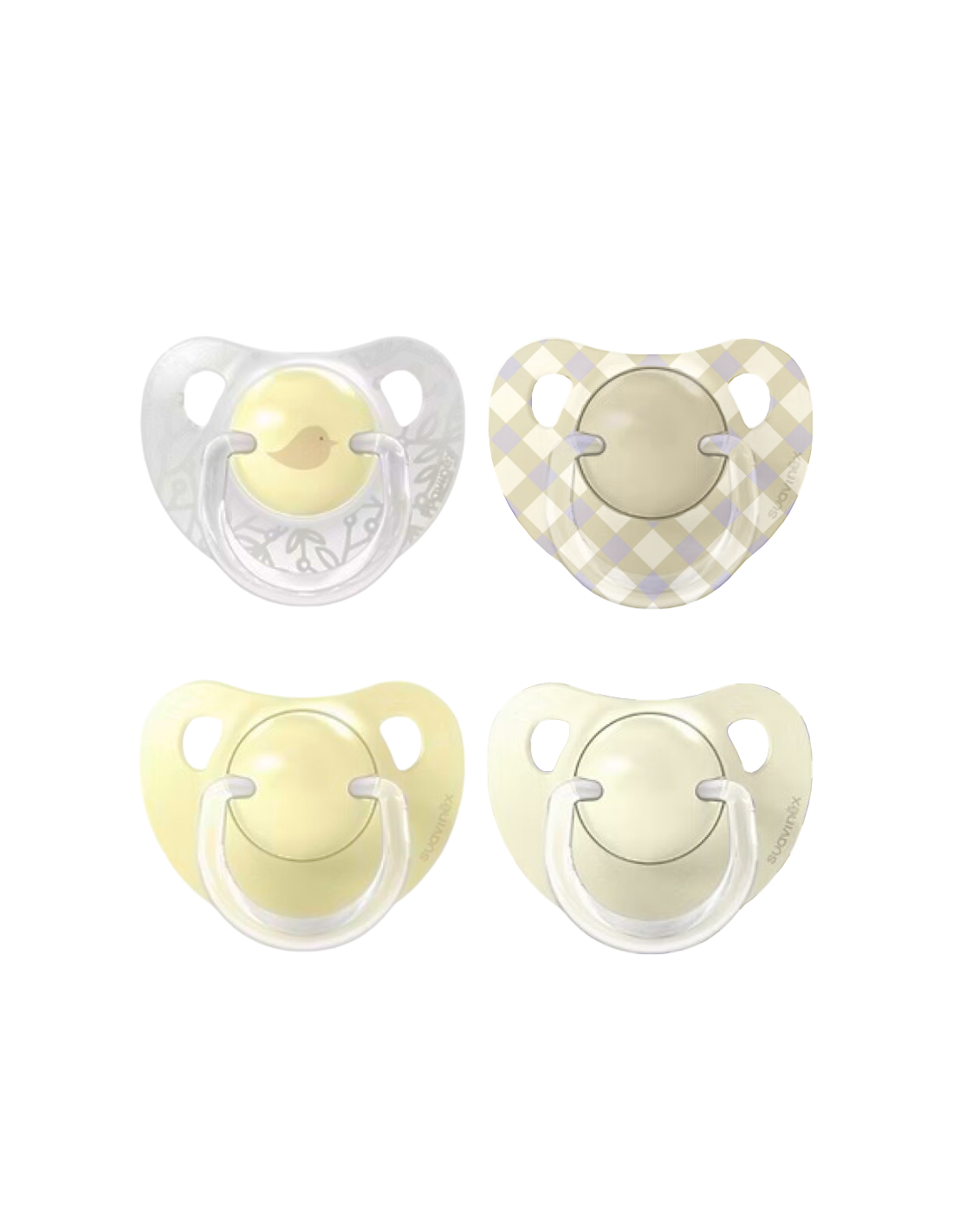 Debe usarse bajo supervisión adulta para garantizar la seguridad del bebé. Inspecciona la tetina y el escudo antes de cada uso, desechando el chupete si presenta grietas, deformaciones o signos de desgaste, y reemplázalo inmediatamente (se recomienda cambiarlo cada 1-2 meses). No lo uses como sustituto de la alimentación ni lo dejes en la boca del bebé durante largos períodos sin supervisión para evitar dependencia. Evita exponerlo a fuentes de calor intenso, luz solar directa o líquidos calientes (por encima de 40°C) para no dañar la silicona. Mantén fuera del alcance de los niños cuando no se use. No apto para bebés alérgicos a la silicona; realiza una prueba supervisada en el primer uso. No sumerjas en soluciones azucaradas o medicamentos para evitar daños dentales. Consulta a un pediatra si notas irritaciones en la piel del bebé o problemas con la lactancia.
