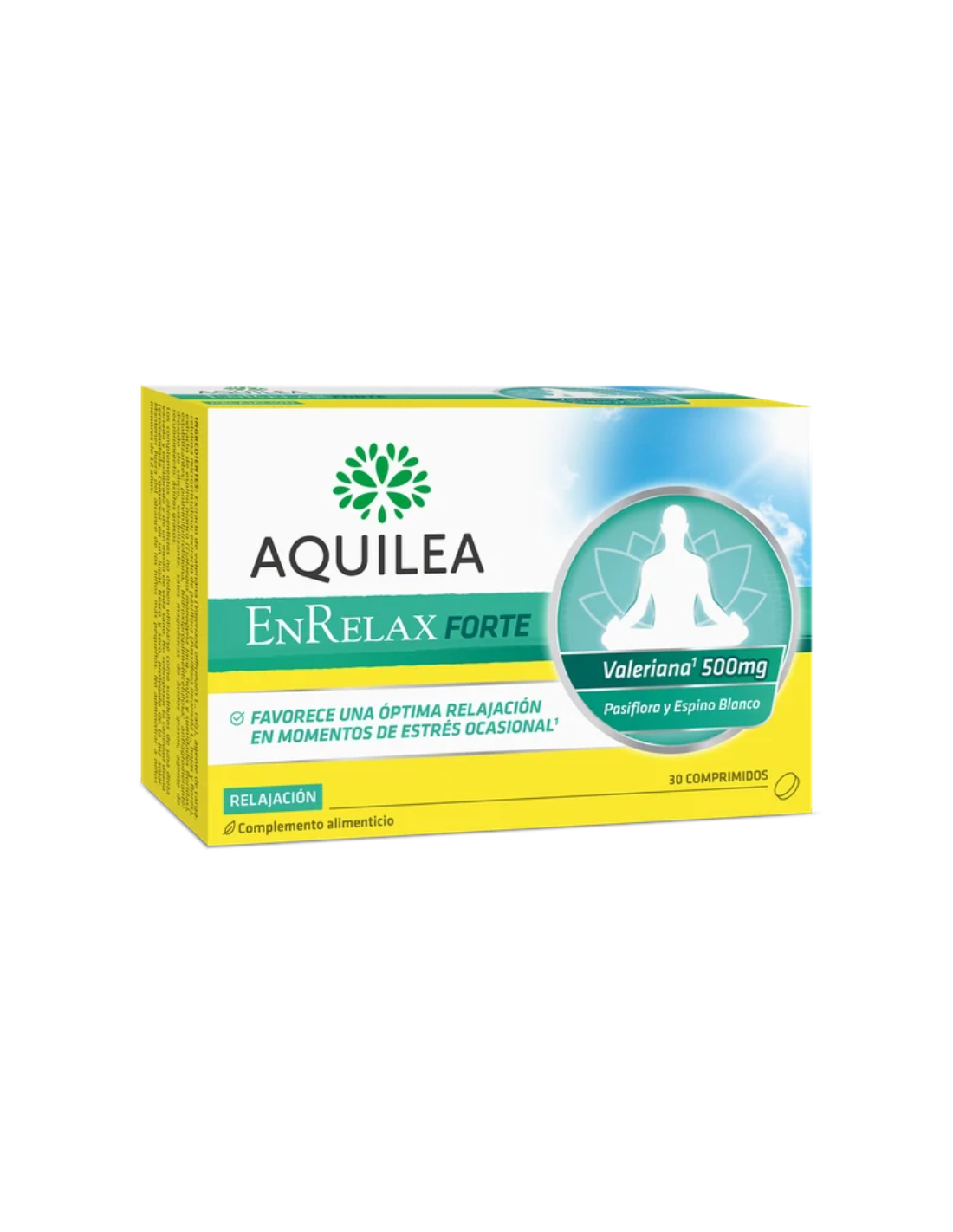 AQUILEA EnRelax Forte Comprimidos contiene por comprimido: Extracto de valeriana (500mg), Extracto de pasiflora (100mg), Extracto de espino blanco (100mg). Esta fórmula vegana apoya el equilibrio emocional y mejora el descanso, ofreciendo un cuidado natural y eficaz sin aditivos innecesarios.