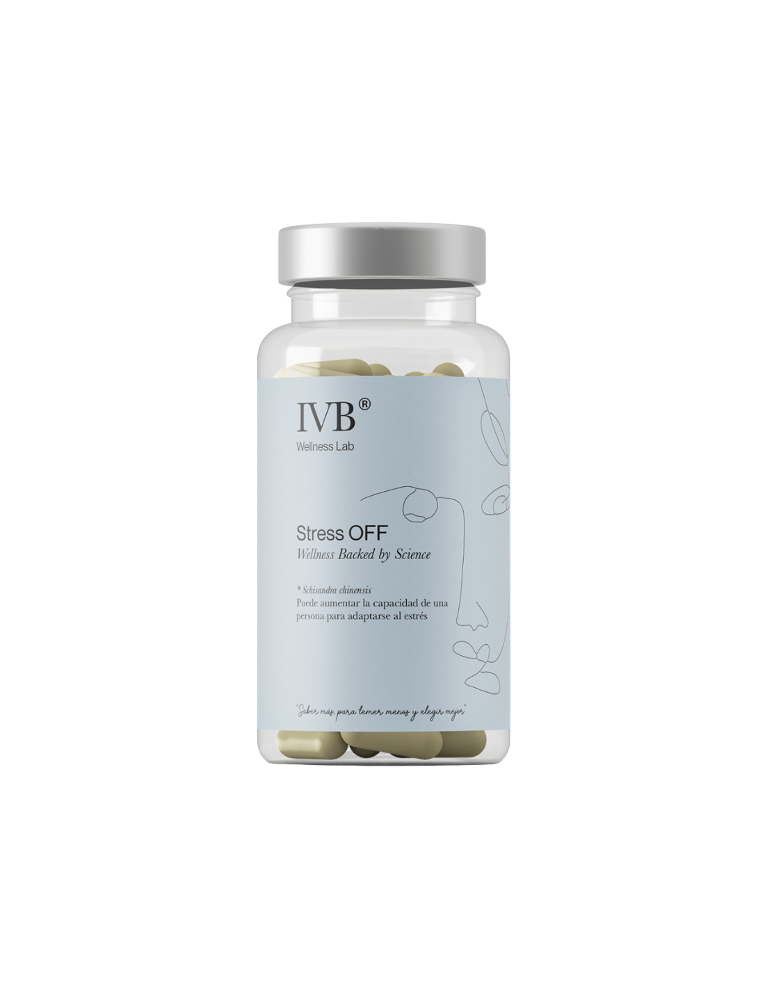 IVB Stress OFF Cápsulas es un complemento alimenticio vegano con una combinación única de extractos de reishi, eleuterococo y schisandra que ayuda al organismo a adaptarse al estrés emocional y diario, promoviendo la calma, el equilibrio y el bienestar general. Estos adaptógenos tradicionales favorecen la resistencia al estrés físico y mental, mejoran la calidad del sueño, aumentan la energía y la claridad mental, y reducen la ansiedad y la fatiga con el uso prolongado (notable desde las 4 semanas hasta los 6 meses). La fórmula sin azúcar ni alérgenos ofrece una respuesta natural al estrés sin efectos excitatorios ni riesgos para personas con sensibilidad tiroidea, ideal para adultos que buscan manejar el estrés cotidiano de forma efectiva y sostenible.
