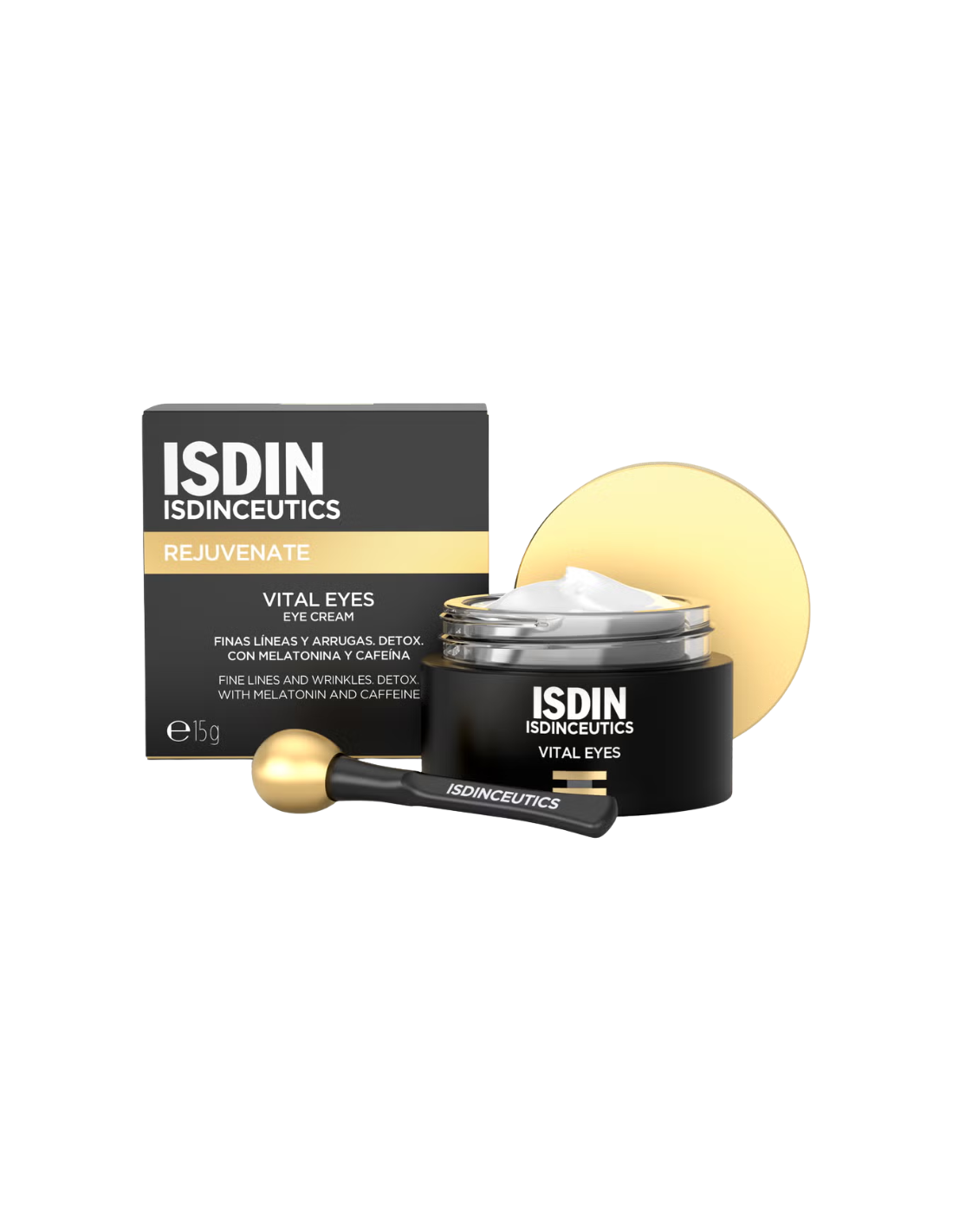 ISDIN Isdinceutics Rejuvenate Vital Eyes es un contorno de ojos antiedad y revitalizante, desarrollado para tratar específicamente la delicada piel alrededor de los ojos. Este tratamiento aporta una triple acción: ayuda a suavizar las líneas finas y las arrugas, mejora la firmeza y la elasticidad cutánea y contribuye a detoxificar y descongestionar la zona periocular, reduciendo la apariencia de fatiga y bolsas para aportar una mirada más descansada y rejuvenecida. Su fórmula ligera y refrescante se absorbe con facilidad y su aplicador especial genera un efecto frío y descongestionante que favorece la circulación y la sensación de confort tras cada aplicación, con resultados visibles en solo 28 días de uso continuado.