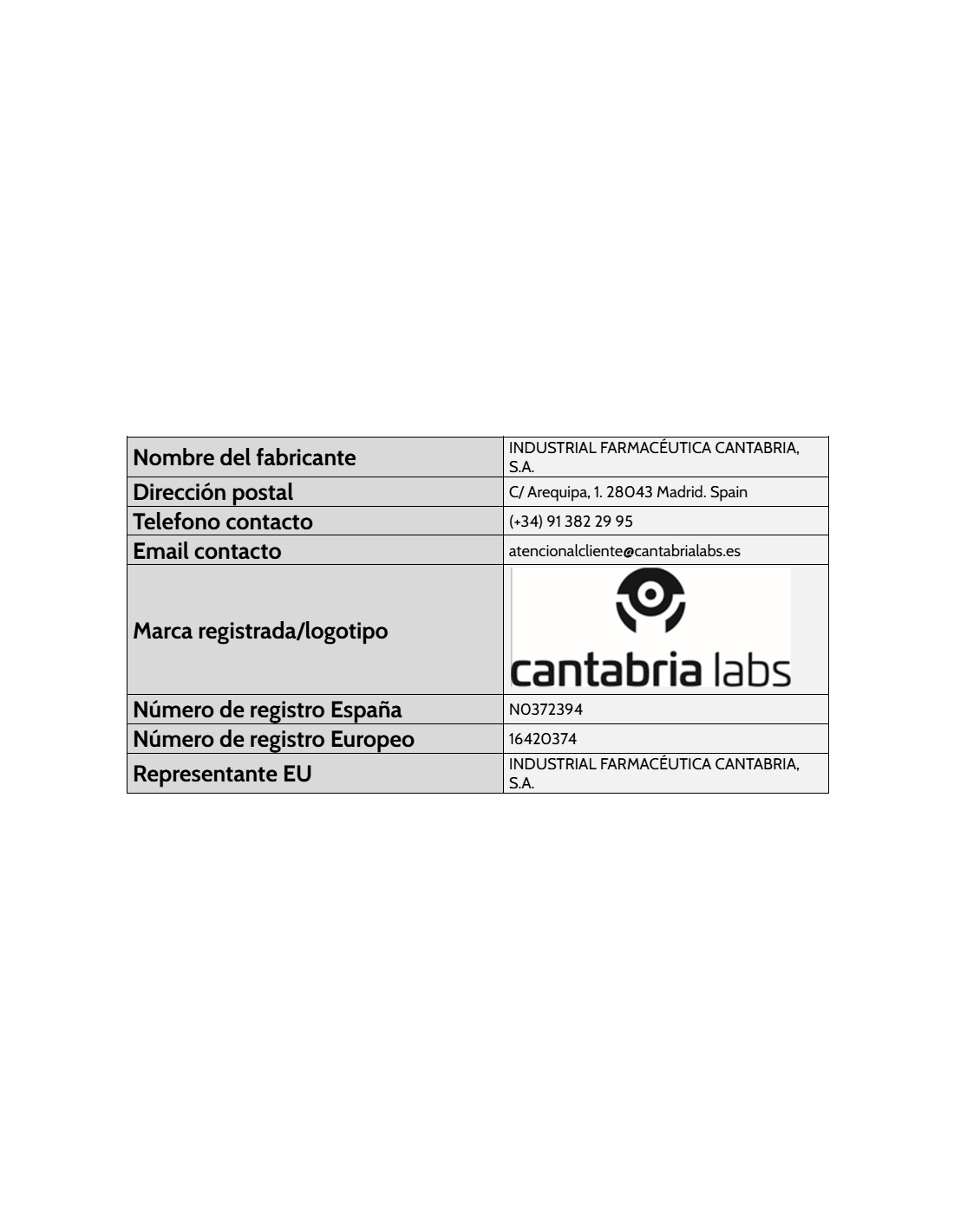 Composición del Producto:
