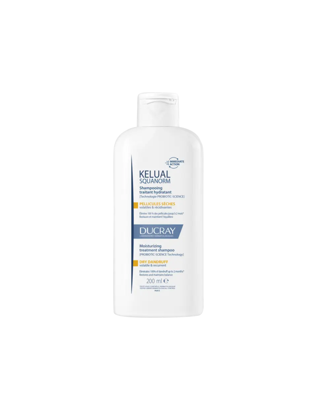 DUCRAY Kelual Squanorm Champú Tratante Hidratante Caspa Seca es un champú dermatológico específicamente formulado para tratar la caspa seca y aliviar las molestias asociadas al cuero cabelludo deshidratado. Su fórmula avanzada inspirada en los efectos beneficiosos de los probióticos ayuda a eliminar eficazmente la caspa visible desde las primeras aplicaciones, al mismo tiempo que hidrata el cuero cabelludo y restaura su equilibrio natural. Además de combatir la descamación, contribuye a calmar el picor y la sensación de tirantez, proporcionando confort inmediato. Su acción anticaspa ayuda a prevenir la reaparición de la descamación durante semanas, dejando el cabello limpio, flexible, suave y con un aspecto saludable tras cada lavado.