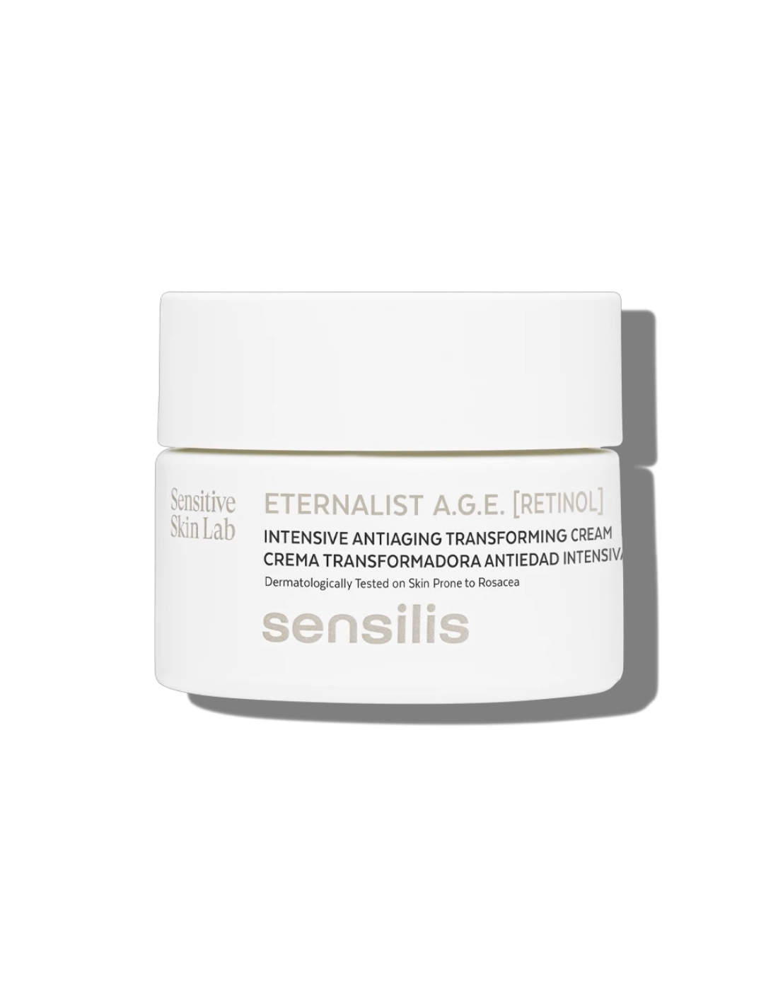 SENSILIS Eternalist A.G.E. [Retinol] es una crema facial antiedad de alta potencia formulada para pieles maduras o sensibles que buscan combatir arrugas, flacidez y pérdida de densidad. Esta crema estimula la renovación celular, reduce arrugas en un 20% tras 28 días y mejora la firmeza y textura de la piel, mientras calma y protege la barrera cutánea. Su textura rica pero no grasa es ideal para uso nocturno, ofreciendo un efecto lifting y rejuvenecedor, siendo apta incluso para pieles reactivas gracias a su fórmula equilibrada.