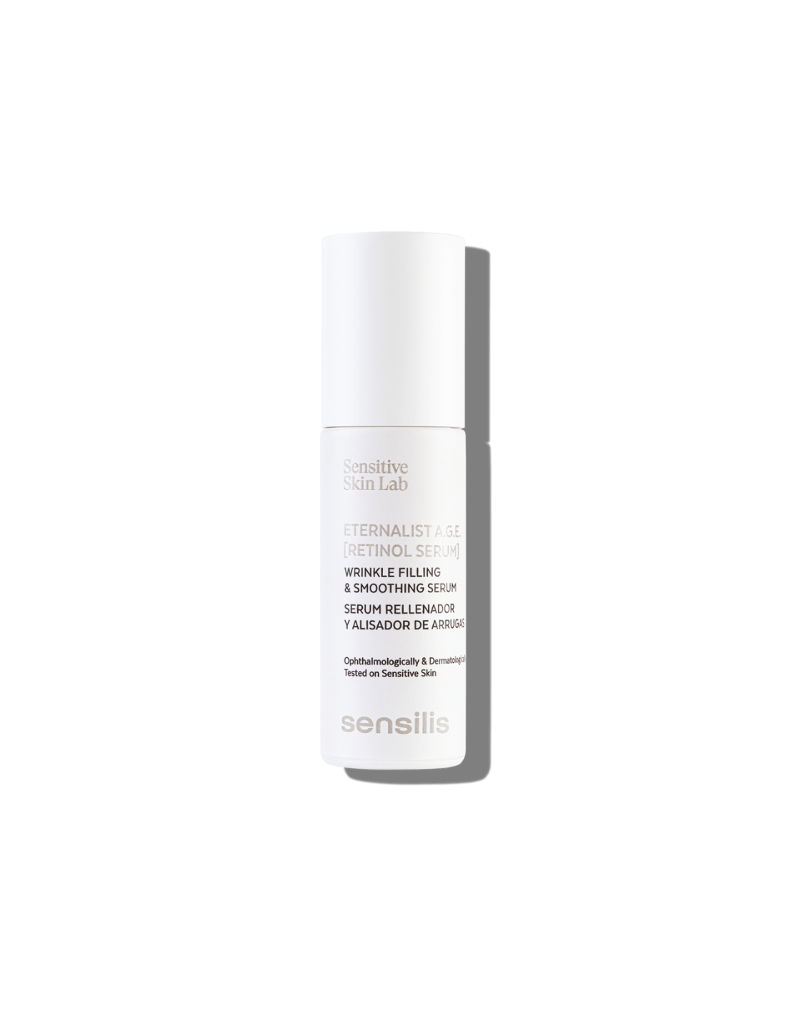 SENSILIS Eternalist A.G.E. [Retinol Serum] contiene: Aqua (Water); Pentylene Glycol; Butylene Glycol; Glycerin; Hydrogenated Lecithin; Isodecyl Neopentanoate; Caffeine; Niacinamide; Sodium Hyaluronate; Mannitol; Phosphatidylcholine; Ethylhexylglycerin; Retinyl Palmitate; Tocopheryl Acetate; Camellia Oleifera Seed Oil; Manilkara Multinervis Leaf Extract; Dipeptide Diaminobutyroyl Benzylamide Diacetate; Tocopherol; Nicotiana Benthamiana Hexapeptide-40 Sh-Polypeptide-76; Ammonium Acryloyldimethyltaurate/VP Copolymer; Cetyl Alcohol; Decyl Glucoside; Lauryl Glucoside; Xanthan Gum; Sodium Chloride; Sodium Hydroxide; Potassium Sorbate; Sodium Benzoate; Parfum (Fragrance).