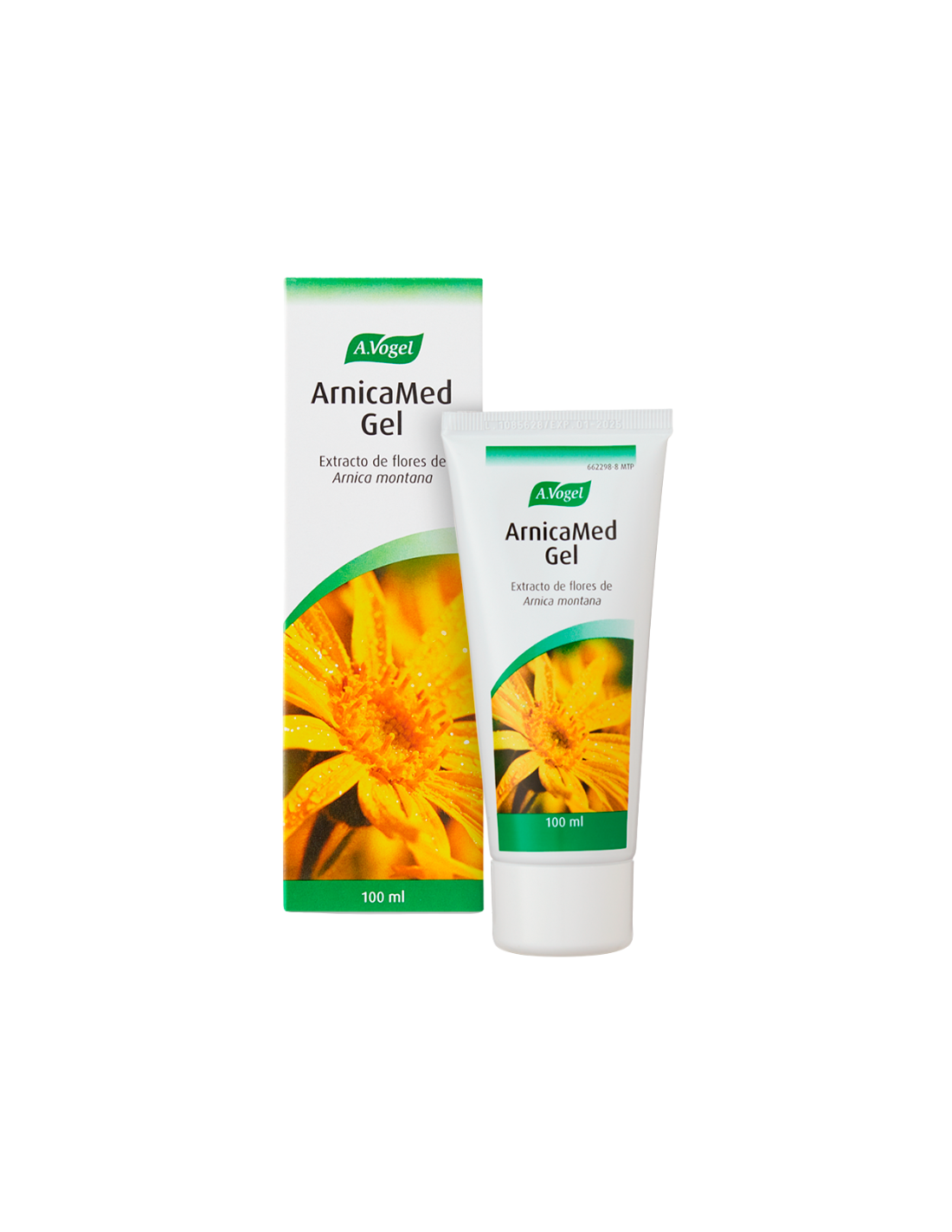 A.VOGEL ArnicaMed Gel de Árnica contiene extracto etanólico de flores frescas de Arnica montana (500 mg por gramo de gel, equivalente a 25 mg de flores secas), junto con excipientes como etanol, agua purificada, glicerol de origen vegetal y copolímero de acriloildimetiltaurato de amonio/VP, que contribuyen a su textura y correcta aplicación cutánea.