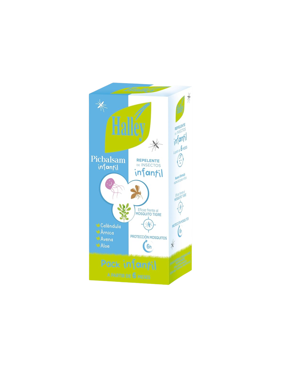 HALLEY Pack Infantil es una solución completa especialmente diseñada para proteger la piel de los más pequeños frente a picaduras de insectos y aliviar las molestias en caso de que aparezcan. Este pack combina un repelente infantil eficaz con una loción calmante postpicadura, proporcionando una protección integral durante actividades al aire libre, viajes o épocas de alta presencia de mosquitos. El repelente actúa creando una barrera protectora que mantiene alejados mosquitos, garrapatas y otros insectos durante horas, mientras que el bálsamo ayuda a calmar el picor, la irritación y el enrojecimiento, ofreciendo bienestar inmediato. Su formulación suave y apta para niños garantiza eficacia sin comprometer la tolerancia cutánea.