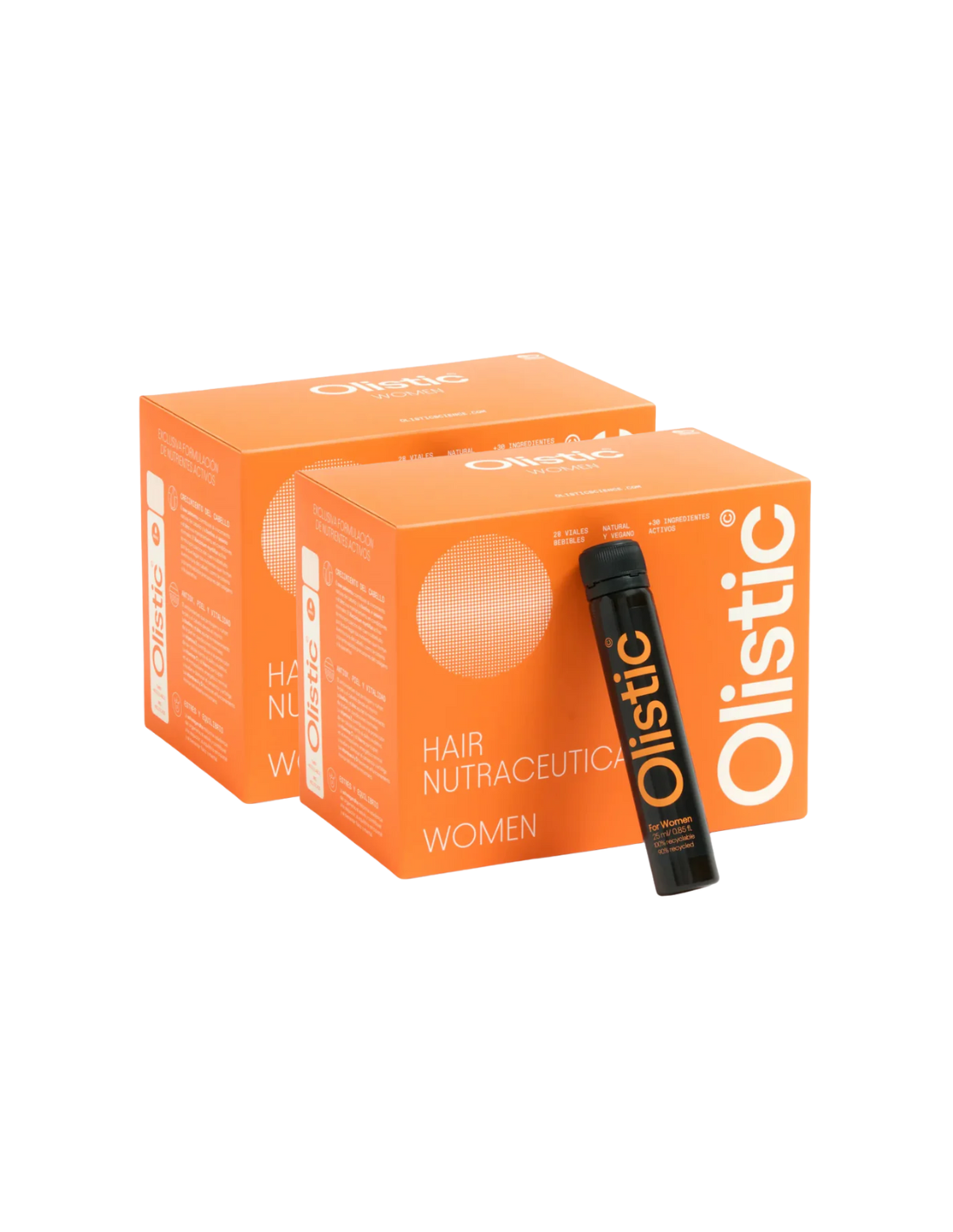 OLISTIC Duplo Women Dosis Bebibles es un tratamiento bebible natural con más de 30 ingredientes activos diseñado para mujeres que experimentan caída capilar, reduciendo la pérdida de cabello, mejorando su fuerza, crecimiento y densidad desde los 3 meses de uso continuo. Esta fórmula vegana y sin gluten actúa desde el interior nutriendo el folículo piloso, favoreciendo la fase anágena y aportando beneficios adicionales en piel y uñas. Con resultados clínicos donde el 94% de las mujeres notan mayor densidad y fuerza tras 6 meses, el duplo ofrece 56 dosis (2 cajas de 28 viales cada una) para un tratamiento completo y prolongado, ideal para frenar la caída estacional, hormonal o por estrés, promoviendo un cabello más sano, voluminoso y brillante con sabor agradable a mango y naranja.
