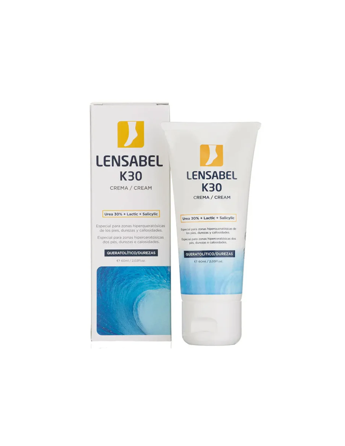 LENSABEL K30 Crema contiene: Aqua, Urea, Glyceryl Stearate SE, Lactic Acid, Glycine, Steareth-2, Dimethicone, Paraffinum Liquidum, Propylene Glycol-2, Salicylic Acid, Steareth-21, Cetyl Alcohol, Phenoxyethanol, Ethylhexylglycerin, Gluconolactone, Parfum.