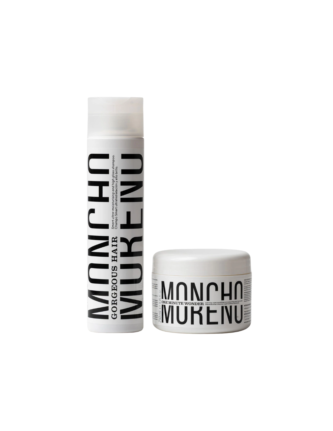 MONCHO MORENO Hair Repair Set es un dúo de cuidado capilar profesional diseñado para reparar y revitalizar el cabello dañado, seco o debilitado, ideal para adultos que buscan una rutina intensiva que hidrate en profundidad, fortalezca la fibra capilar y devuelva brillo y vitalidad natural en pocos usos. Este pack incluye el Champú Gorgeous Hair 250 ml, un champú smart de ultrahidratación que limpia suavemente mientras nutre y realza el brillo, y la Mascarilla One Minute Wonder 250 ml, un tratamiento supernutritivo que repara enlaces internos en solo 1 minuto sin aclarado. Perfecto para cabellos tratados, teñidos o expuestos al calor, este set promueve un cabello sedoso, resistente y lleno de vida, con resultados visibles en suavidad y luminosidad desde la primera aplicación.