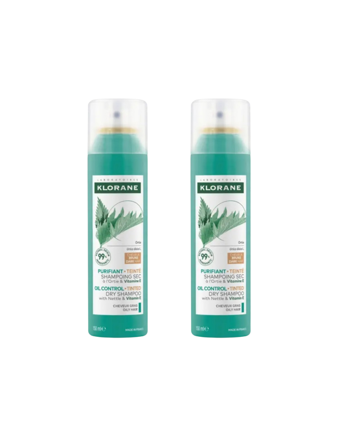 KLORANE Duplo Champú Seco Purificante Cabello Moreno a la Ortiga 2x150ml
