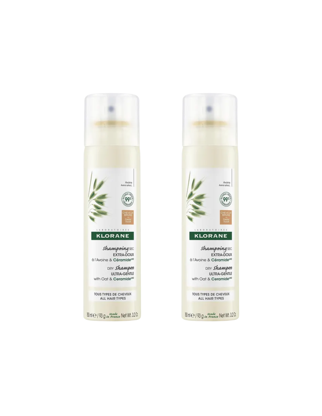 KLORANE Duplo Champú Seco Cabello Moreno a la Avena 2x150 ml