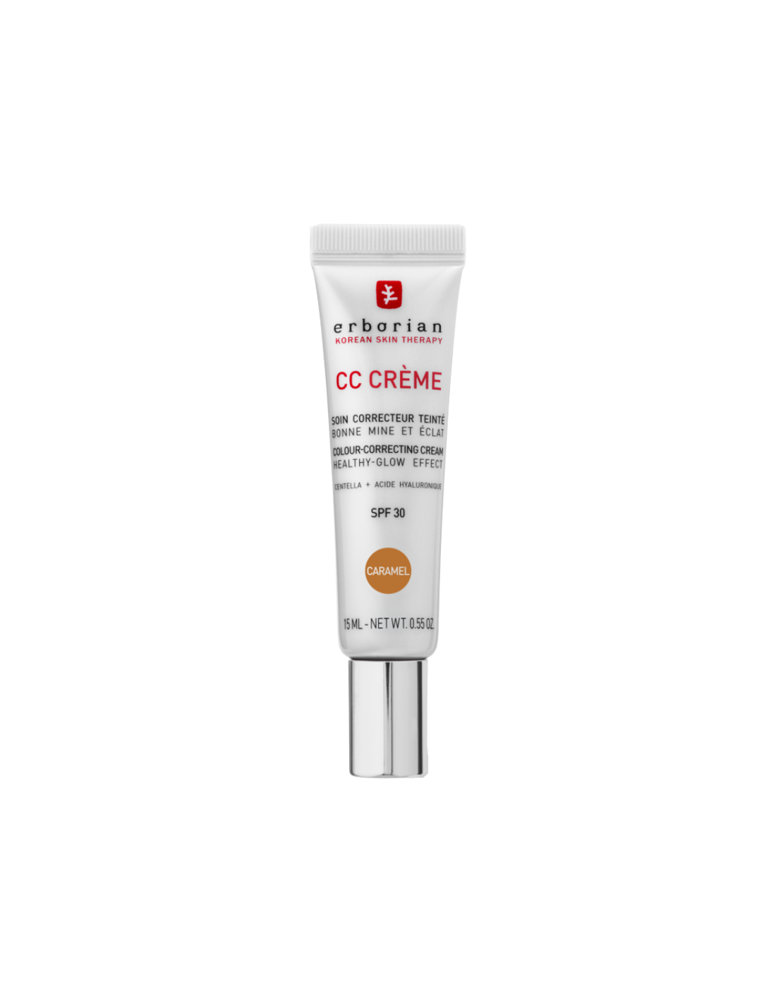 ERBORIAN CC Crème SPF 30 Caramel es una crema CC perfeccionadora que fusiona tratamiento y maquillaje para unificar el tono, hidratar y proteger la piel, con un acabado natural y radiante. Enriquecida con 2% de Centella Asiática calmante y Ácido Hialurónico humectante, ofrece hidratación 24h, mejora la textura en 28 días y SPF 30 contra rayos UV nocivos. Ideal para pieles secas a normales en tono Caramel, su textura transformadora, con pigmentos encapsulados, se funde sin esfuerzo, proporcionando cobertura ligera, luminosidad "buena cara" y efecto anti-fatiga. Este tratamiento se integra perfectamente en rutinas diarias para una tez equilibrada, protegida y revitalizada, con beneficios clínicos en hidratación y uniformidad.