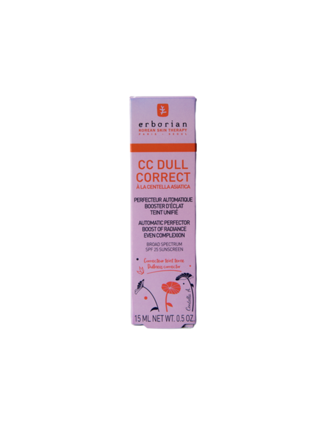 ERBORIAN CC Dull Correct SPF 25 es un tratamiento perfeccionador multifuncional que corrige la opacidad instantáneamente, unificando el tono y revitalizando la piel con un acabado luminoso natural. Formulado con pigmentos violetas neutralizadores y microperlas minerales reflectoras de luz, transforma subtonos amarillos en un brillo radiante, mientras Centella Asiática calma e hidrata, y extracto de raíz de Regaliz ofrece acción antioxidante. Con SPF 25 para protección UV y pigmentos encapsulados que se adaptan al tono beige-dorado, es ideal para pieles apagadas, mixtas o grasas. Resultados clínicos: piel más luminosa y unificada en 4 semanas. Integra este tratamiento antiopacidad en tus rutinas diarias para una tez fresca, equilibrada y protegida.