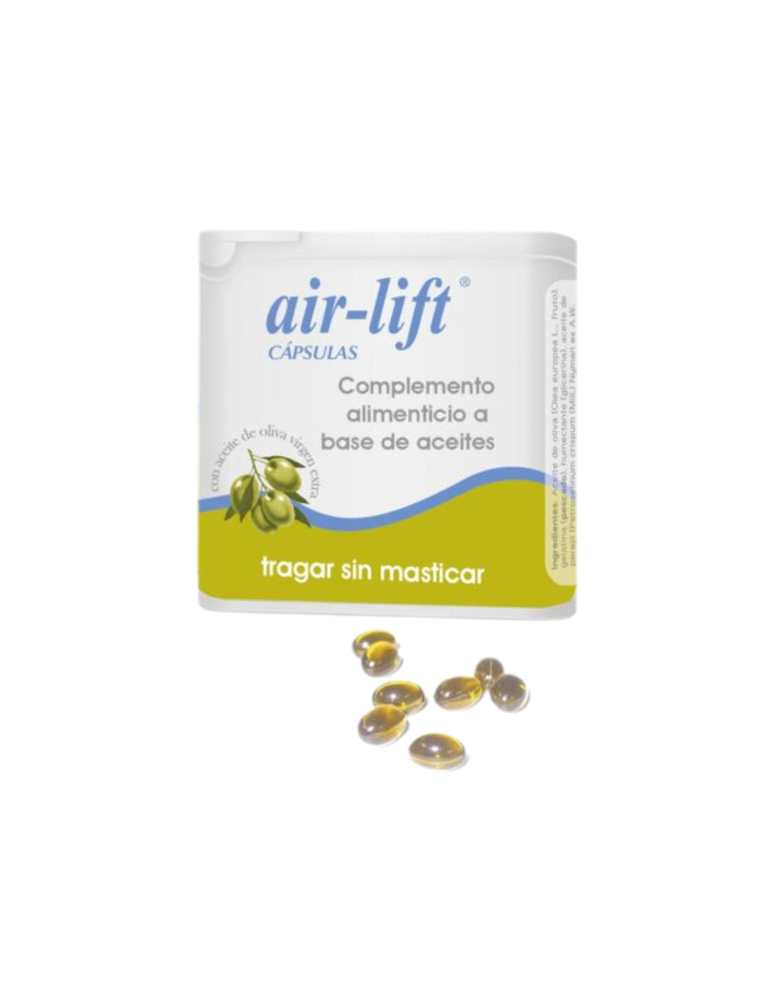 Air-Lift Cápsulas es un complemento alimenticio diseñado para neutralizar el mal aliento (halitosis) de forma natural y efectiva, ideal para adultos que buscan un aliento fresco durante horas. Formulado con una combinación patentada de aceite de oliva virgen extra, este producto actúa desde el interior, atrapando y eliminando los compuestos volátiles sulfurados (CVS) causantes de la halitosis, sin alterar el equilibrio bucal ni la flora natural. Apto para combatir el mal aliento provocado por alimentos (ajo, cebolla), tabaco, alcohol, dietas ricas en proteínas o ayunos prolongados, ofrece un frescor mentolado que dura hasta 4-6 horas. Su formato de 40 cápsulas es práctico para llevar y usar en cualquier momento, garantizando confianza y bienestar bucal.