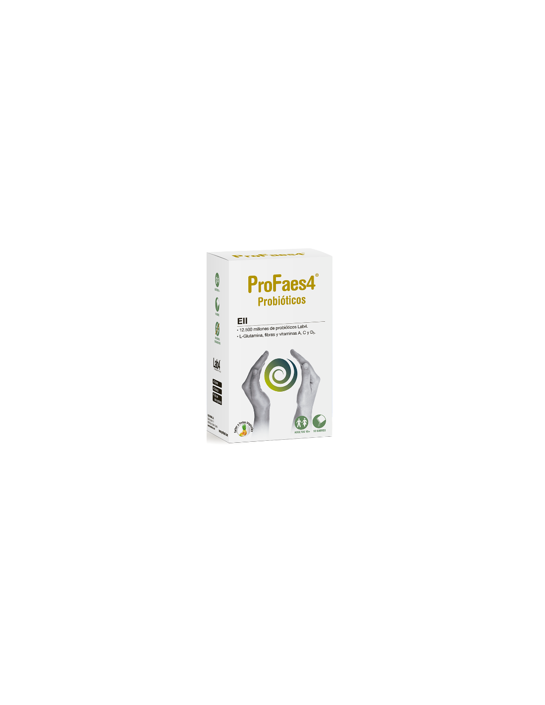 Faes Profaes4 EII 10 Sobres es un complemento alimenticio en polvo a base de bacterias lácticas, fibras L-Glutamina, aloe y rico en vitaminas A, C y D. con edulcorantes.