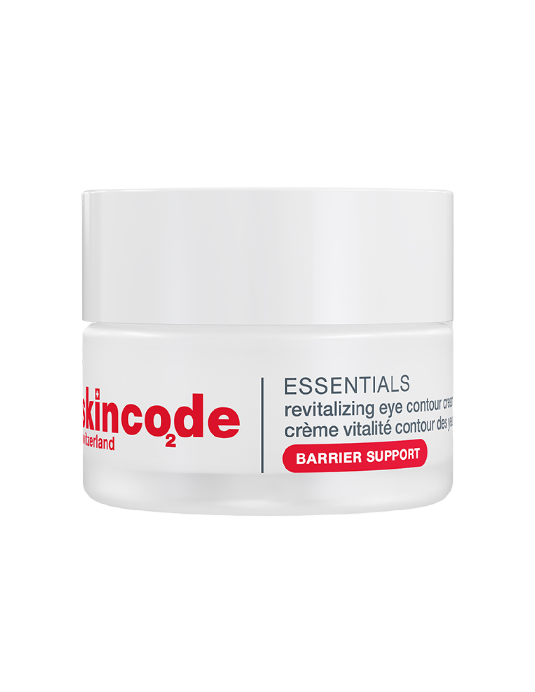 Skincode Essentials Revitalizing Eye Contour Cream es una crema ligera y sedosa diseñada para revitalizar y rejuvenecer la delicada zona del contorno ocular. Su fórmula avanzada combina ingredientes activos que ayudan a reducir la apariencia de ojeras, bolsas y líneas finas, al tiempo que aportan hidratación y luminosidad. Estimula la regeneración celular, ilumina, descongestiona, fortalece y calma la piel.