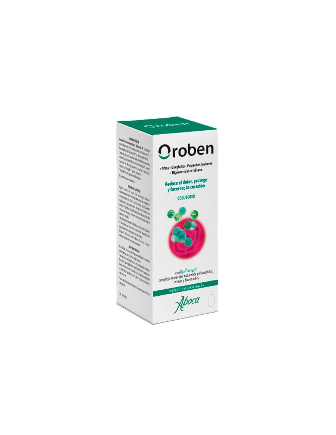 Oroben Colutorio es rápidamente eficaz en aftas, gingivitis y pequeñas lesiones de la boca. Reduce el dolor y los tiempos de curación creando en la mucosa un film protector e hidratante con “efecto barrera”. OroBen Colutorio llega a toda la cavidad oral, mediante enjuagues y gargarismos, eliminando así los agentes irritantes y favoreciendo el control del microambiente, la higiene y la protección de la boca. En los periodos de mayor sensibilidad puede utilizarse como protección preventiva de la mucosa oral. También es apto para niños mayores de 6 años y mujeres embarazadas o en periodo de lactancia.