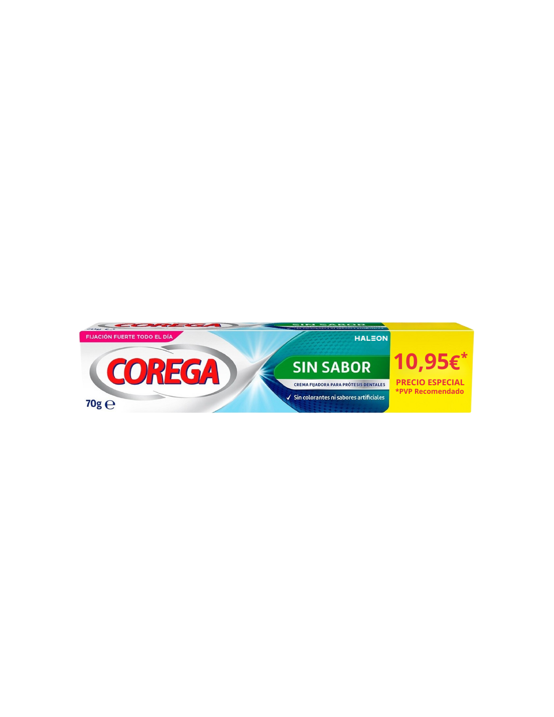 COREGA Crema Fijadora Prótesis Dentales Sin Sabor es una crema adhesiva especialmente formulada para proporcionar una fijación fuerte y duradera a las prótesis dentales completas o parciales durante todo el día, sin añadir sabores ni colorantes artificiales para un uso más natural y cómodo. Esta versión sin sabor evita el gusto artificial, crea un sello protector que impide la entrada de partículas de comida bajo la dentadura, amortigua las encías sensibles y reduce irritaciones o roces. Ideal para usuarios que prefieren una experiencia neutra y discreta, ofrece comodidad prolongada, estabilidad al hablar y comer, y una aplicación fácil. Perfecta para rutinas diarias de portadores de prótesis que buscan fijación confiable, higiene y bienestar oral.