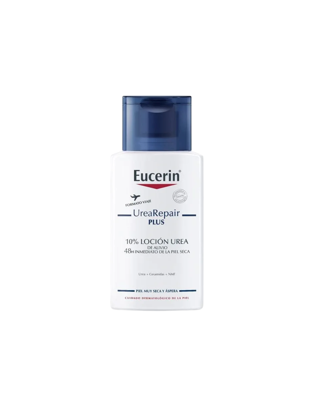 Eucerin UreaRepair PLUS Loción Corporal 10% Urea es una loción hidratante intensiva diseñada para aliviar y tratar pieles muy secas, ásperas o con tendencia atópica, proporcionando hasta 48 horas de hidratación y alivio inmediato contra la tirantez. Refuerza la barrera cutánea, reduce la descamación y mejora la suavidad de la piel, siendo ideal para condiciones como xerosis o dermatitis atópica. Apta para adultos con piel sensible, su textura ligera y no grasa se absorbe rápidamente, ofreciendo un cuidado diario eficaz. El formato compacto de 100 ml es perfecto para viajes o uso localizado, garantizando confort y protección contra la sequedad extrema.