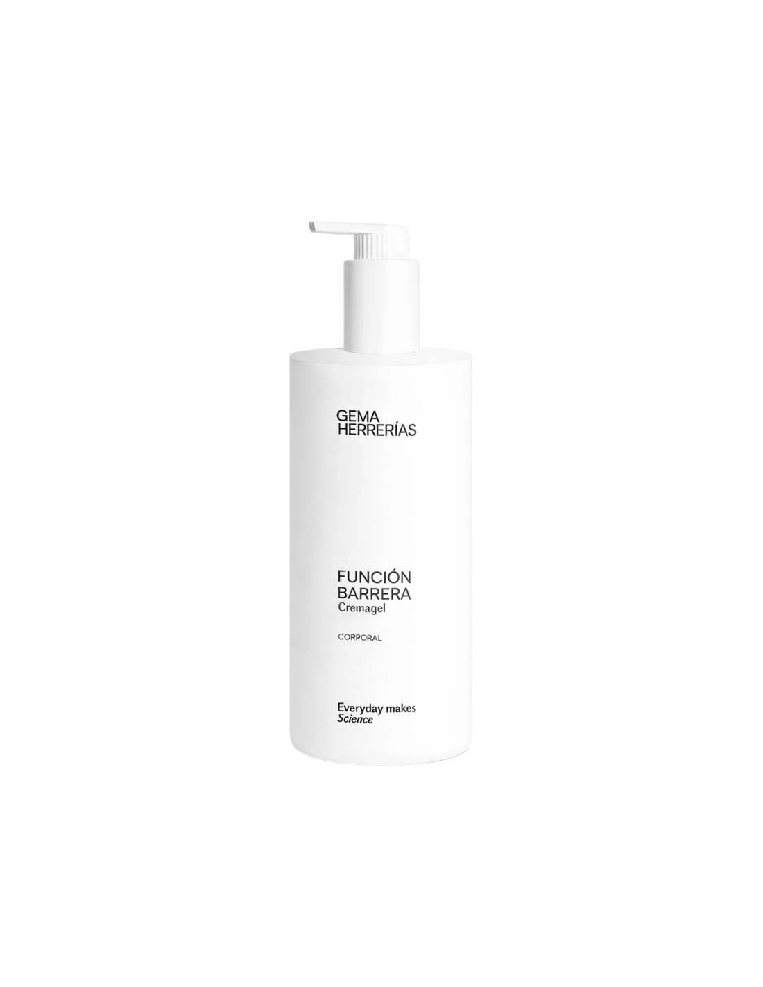 GEMA HERRERÍAS Función Barrera Cremagel Corporal es una crema corporal en textura cremagel diseñada para reparar y reforzar la función barrera de la piel, aportando hidratación profunda y mejorando su elasticidad. Su fórmula avanzada ayuda a reducir la pérdida de agua transepidérmica, mantener el equilibrio de la dermobiota y proteger frente a agresiones externas. Apta para todo tipo de pieles, incluidas las más sensibles, destaca por su textura ligera de rápida absorción que no deja residuo graso, proporcionando confort inmediato y una piel más suave, flexible y luminosa.