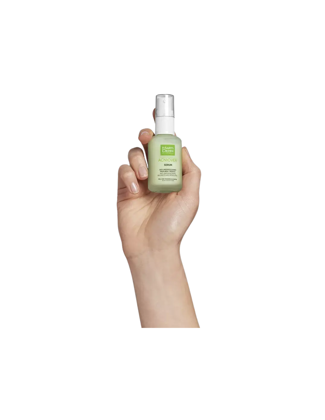 MARTIDERM Acniover Serum es un tratamiento ligero y de rápida absorción diseñado para equilibrar la microbiota cutánea, regular el pH y reforzar la función barrera, ayudando a mantener la piel más resistente y saludable. Su acción seborreguladora y matificante contribuye a reducir brillos, controlar el exceso de grasa y minimizar la aparición de imperfecciones, dejando el rostro con un aspecto más uniforme, liso y equilibrado. Ideal para pieles con tendencia acnéica que buscan un sérum eficaz, cómodo de usar y capaz de mejorar la calidad de la piel día tras día sin aportar pesadez.