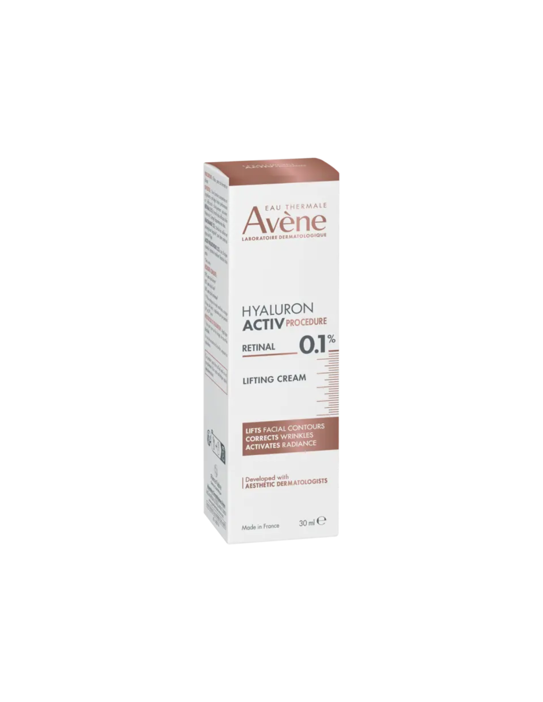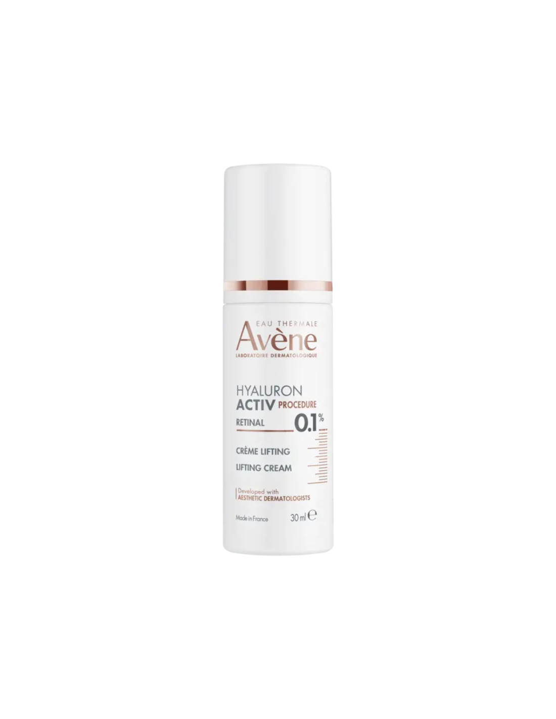 AVENE Hyaluron Activ Procedure Retinal 0,1 incluye: AVENE THERMAL SPRING WATER (AVENE AQUA). CAPRYLIC/CAPRIC TRIGLYCERIDE. GLYCERIN. SQUALANE. BUTYROSPERMUM PARKII (SHEA) BUTTER (BUTYROSPERMUM PARKII BUTTER). CARTHAMUS TINCTORIUS (SAFFLOWER) SEED OIL (CARTHAMUS TINCTORIUS SEED OIL). PENTAERYTHRITYL TETRACAPRYLATE/TETRACAPRATE. CETEARYL ALCOHOL. BEHENYL ALCOHOL. NIACINAMIDE. C20-22 ALKYL PHOSPHATE. C20-22 ALCOHOLS. ACACIA SENEGAL GUM. ADENOSINE. CETEARYL GLUCOSIDE. HELIANTHUS ANNUUS (SUNFLOWER) SEED OIL (HELIANTHUS ANNUUS SEED OIL). RETINAL. SODIUM BENZOATE. SODIUM HYALURONATE. SODIUM HYDROXIDE. TERMINALIA CHEBULA FRUIT EXTRACT. TOCOPHEROL. TOCOPHERYL GLUCOSIDE. XANTHAN GUM.