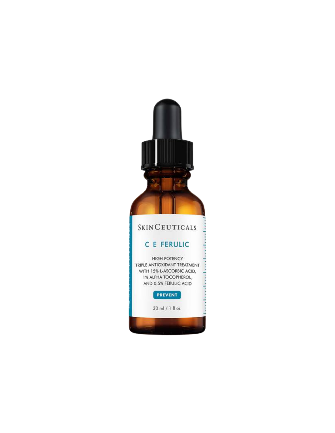 SkinCeuticals C E Ferulic es un sérum antioxidante de referencia con 15% de vitamina C pura (L-ascórbico), 1% de vitamina E (alfa tocoferol) y 0.5% de ácido ferúlico, que proporciona protección óptima contra radicales libres causados por rayos UV, contaminantes e IR. Neutraliza hasta el 41% de radicales libres, reduce visiblemente arrugas finas, mejora la firmeza (+27%), luminosidad (+36%) y uniformidad del tono en 12 semanas. Refuerza la barrera cutánea, previene el fotoenvejecimiento y corrige signos de daño solar. Ideal para pieles normales a secas con signos de envejecimiento, de rápida absorción y sin residuo. Clínicamente probado, patentado, para una piel más joven y radiante diariamente.
