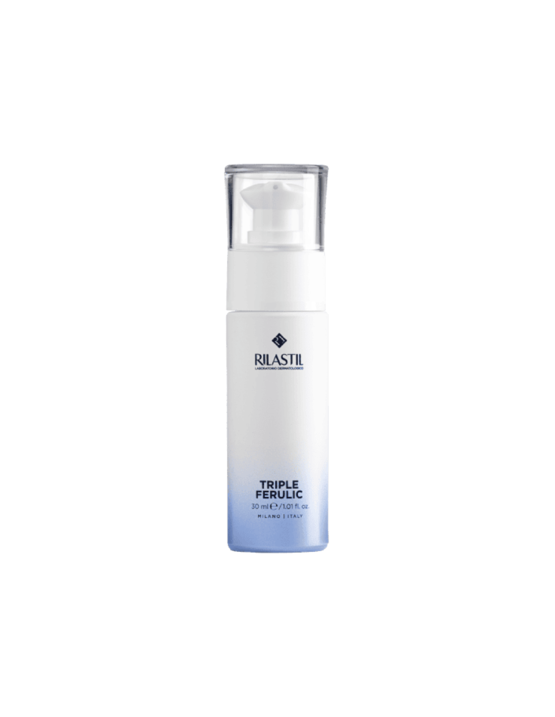 RILASTIL Multirepair Triple Ferulic Sérum Bi-Gel es un sérum facial antiedad de alta potencia diseñado para pieles maduras, sensibles o con signos de envejecimiento como arrugas, flacidez y manchas. Este sérum combate el daño oxidativo causado por los radicales libres, mejora la firmeza, ilumina el tono y reduce los signos del fotoenvejecimiento. Su innovadora textura bi-gel, ligera y no grasa, se absorbe rápidamente, siendo ideal para uso diario en rostro y cuello. Testado dermatológicamente, es no comedogénico y apto para pieles sensibles, ofreciendo un cuidado intensivo para una piel más joven y radiante.
