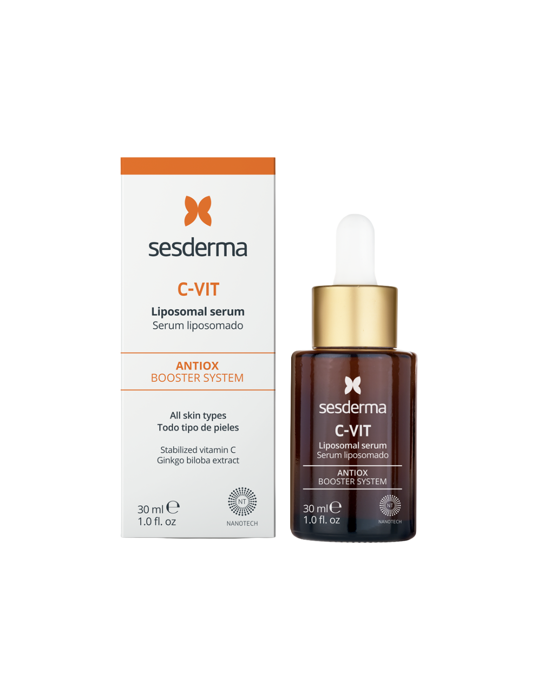 SESDERMA C-VIT Sérum Liposomado es un potente tratamiento antioxidante, iluminador y antiedad que devuelve a la piel su vitalidad, firmeza y luminosidad natural. Gracias a su exclusiva fórmula con vitamina C estabilizada encapsulada en liposomas, actúa desde las capas más profundas de la piel para neutralizar los radicales libres, prevenir el fotoenvejecimiento y estimular la producción natural de colágeno y elastina. Su textura ligera y de rápida absorción lo convierte en el aliado perfecto para pieles apagadas, fatigadas o con falta de tono, aportando un aspecto más uniforme, suave y radiante. Con su uso continuado, la piel se muestra más firme, joven y con un brillo saludable, transformando la tez opaca en una piel llena de luz.