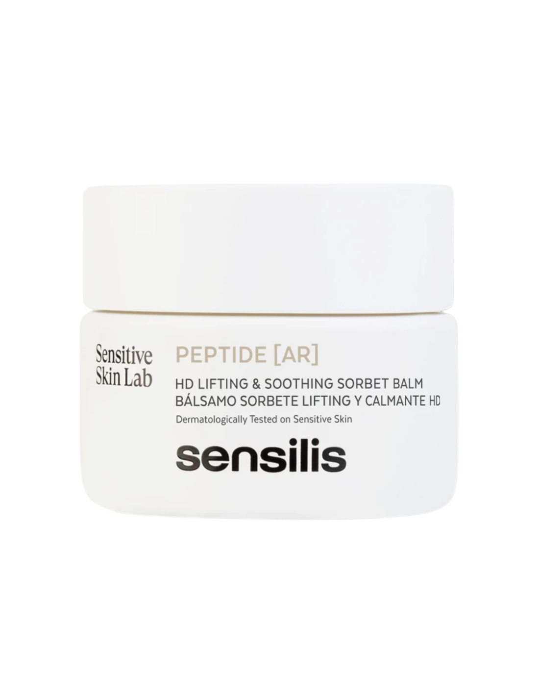 SENSILIS Pack Peptide combina dos esenciales antiedad de la línea Peptide: el bálsamo facial Peptide [AR] Balm 50 ml, un tratamiento de alta definición con péptidos que aporta un efecto lifting inmediato, mejora la firmeza y la elasticidad de la piel sensible, y calma gracias a sus activos reparadores; y el contorno de ojos Peptide [Eye Lisss] 15 ml, diseñado con un 4 % de péptido SYN-AKE para reducir arrugas, suavizar la expresión de líneas y elevar el párpado superior, mientras que su aplicador metálico favorece un masaje refrescante y reafirmante. Este dúo promueve una piel más lisa, tersa y visiblemente rejuvenecida, ideal para quienes buscan frenar los signos del envejecimiento sin renunciar a una sensación de confort y suavidad.