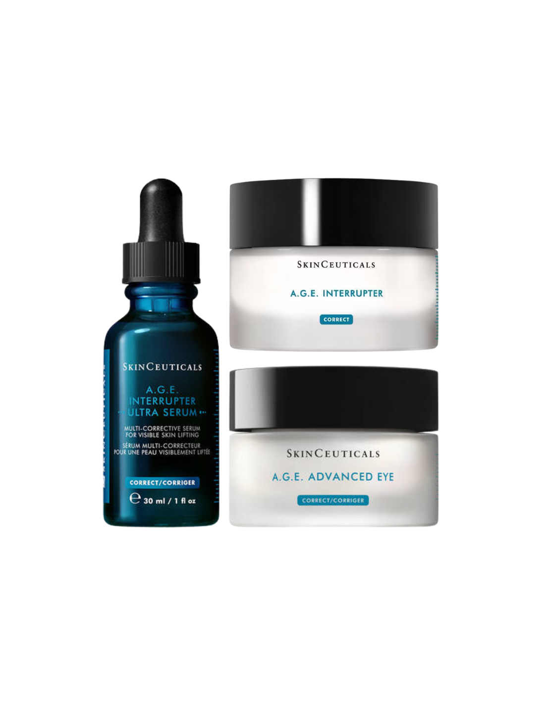 SkinCeuticals Pack Protocolo Firmeza & Lifting es un tratamiento antiedad premium diseñado para reafirmar la piel, reducir la flacidez y restaurar la elasticidad cutánea de forma integral, ideal para adultos con pieles maduras que buscan una rutina de skincare efectiva contra arrugas, pérdida de densidad y contornos caídos con resultados visibles en firmeza y luminosidad. Este pack incluye el A.G.E. Interrupter Sérum 30 ml, un sérum corrector global que interrumpe la glicación avanzada para reafirmar y densificar la piel, el A.G.E. Advanced Eye 15 ml, una crema especializada que corrige ojeras, bolsas y líneas perioculares con péptidos y antioxidantes, y el regalo A.G.E. Interrupter 15 ml, un concentrado nutritivo para potenciar la reparación y el lifting facial.