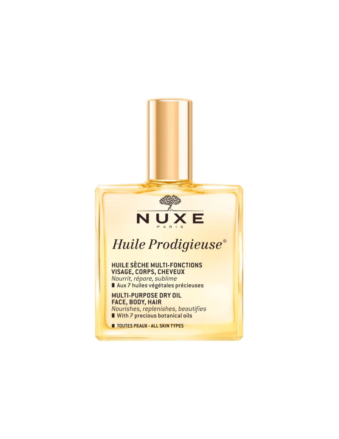 NUXE Huile Prodigieuse 10 ml: Con 7 aceites preciosos 100% de origen vegetal: Aceite de Tsubaki, Aceite de Argán, Aceite de Macadamia, Aceite de Borraja, Aceite de Camelia, Aceite de Avellana y Aceite de Almendra Dulce. Fragancia sensual con notas de Flor de Azahar, Magnolia y Vainilla.