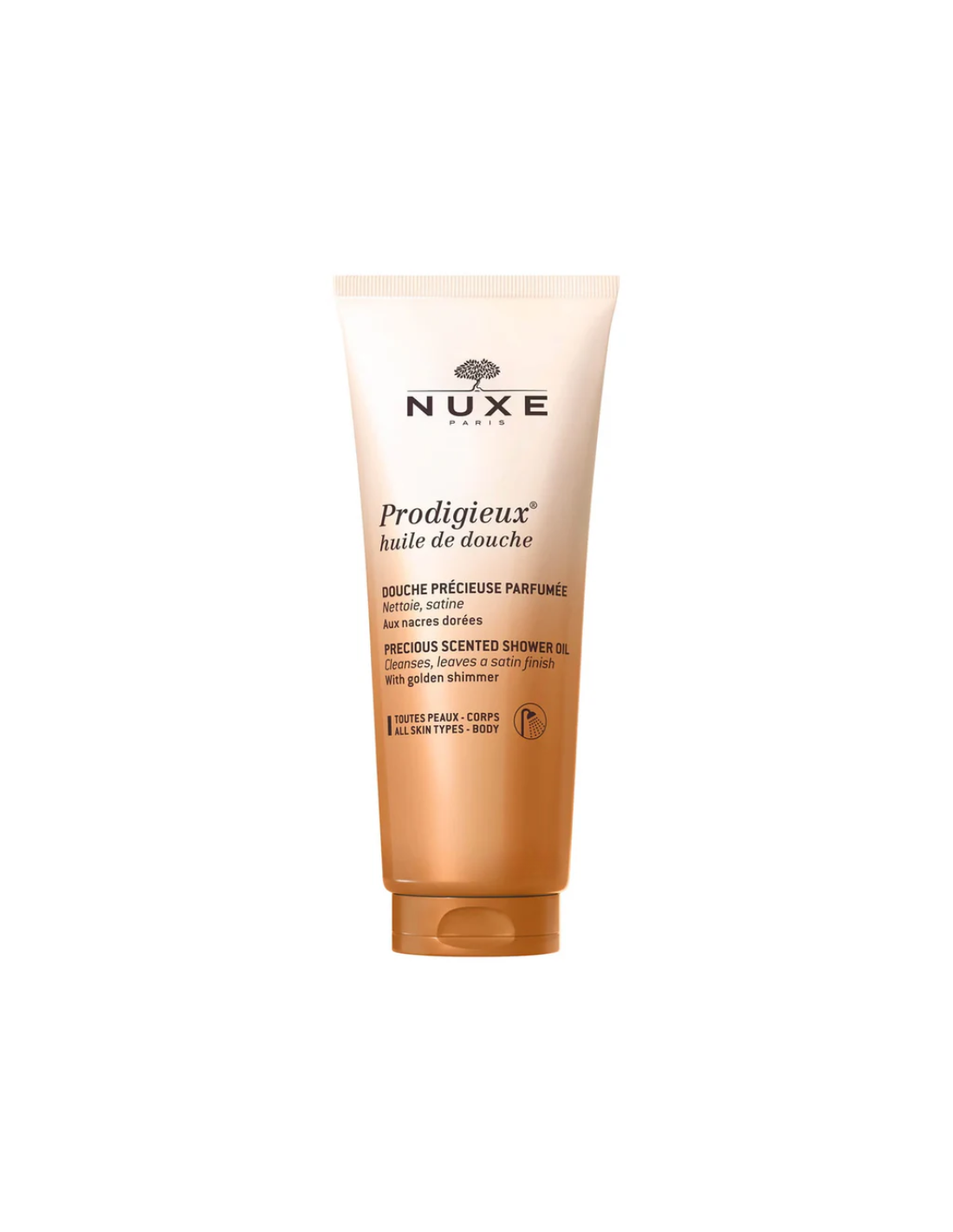 NUXE Prodigieux Aceite de ducha 30 ml: Una suave base limpiadora, con partículas nacaradas doradas y la sensual fragancia de Huile Prodigieuse®.