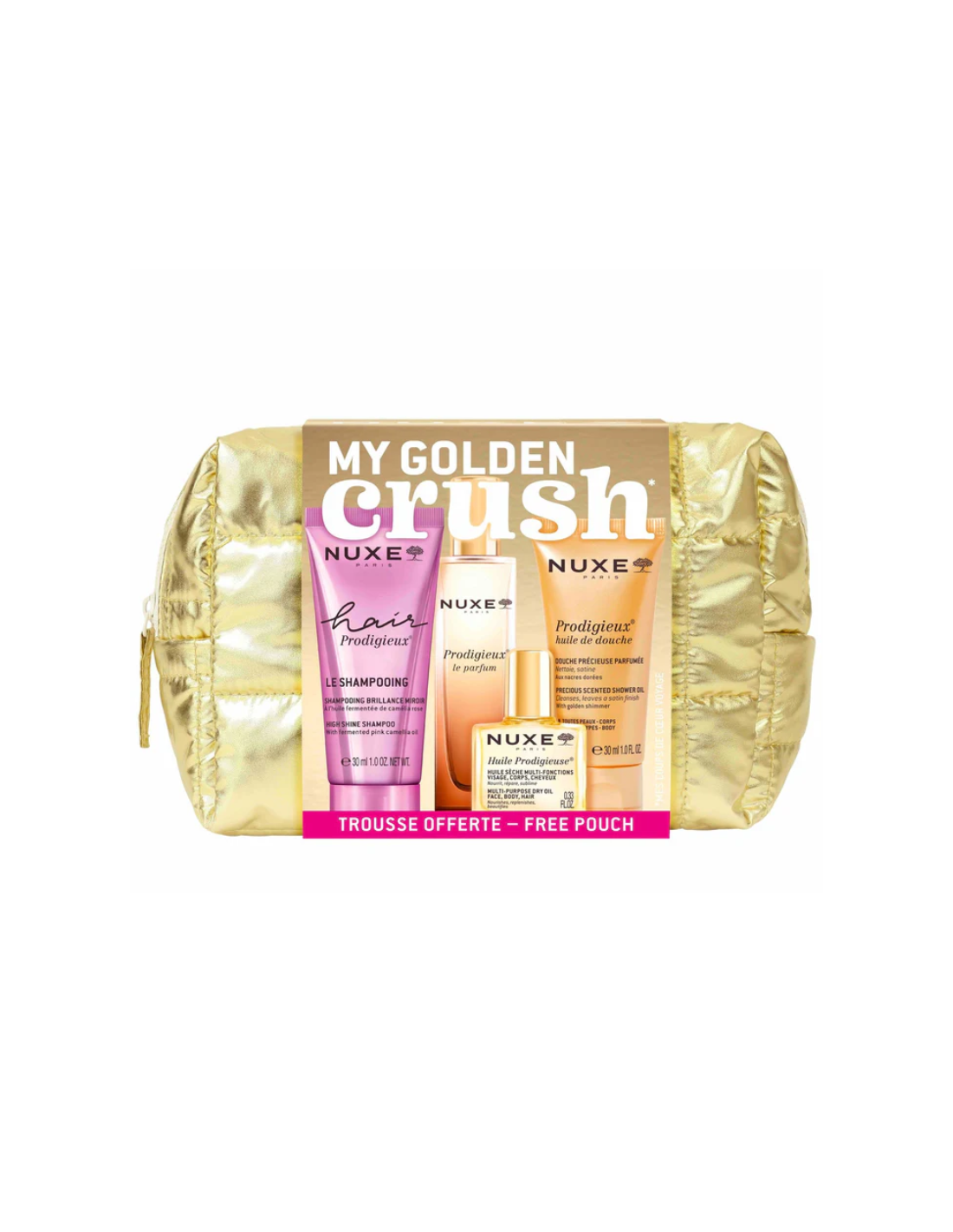 NUXE Pack My Golden Crush es un exclusivo set de cuidado corporal que combina tratamientos icónicos para nutrir, embellecer e iluminar la piel con un acabado satinado y un aroma envolvente. Este pack está diseñado para aportar hidratación profunda, suavidad y luminosidad gracias a su combinación de aceites vegetales y activos sensoriales, ideal para quienes buscan una rutina de belleza completa que realce la piel y la deje visiblemente más radiante. Su textura ligera y de rápida absorción lo convierte en una opción perfecta tanto para el uso diario como para ocasiones especiales.
