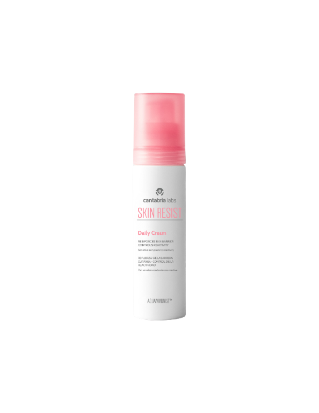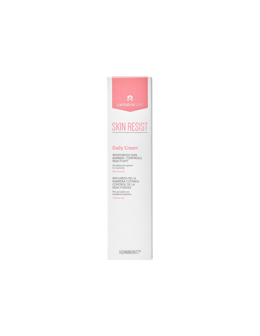 SKIN RESIST Daily Cream es una crema rica diaria que refuerza la función barrera cutánea, controla la reactividad y aumenta la resistencia natural de la piel frente al inflammaging (envejecimiento inflamatorio). Formulada con 93% de ingredientes de origen natural que fortalecen la barrera, calman, protegen, optimizan el equilibrio de la barrera y reducen las irritaciones. Ideal para pieles secas, deshidratadas o reactivas, alivia rojeces, picor y disconfort inmediato, hidrata intensamente y previene signos prematuros de envejecimiento. Ofrece textura rica de absorción completa y confort prolongado. Perfecta para rutinas antiedad en pieles sensibles que buscan calma, hidratación profunda y protección diaria contra agresores ambientales.