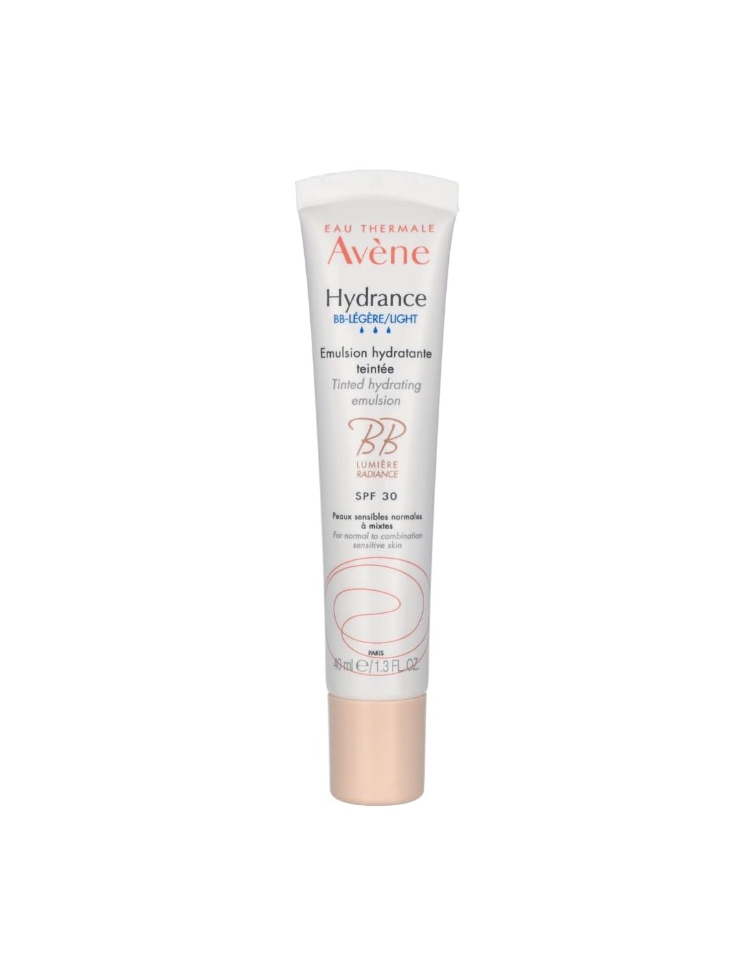 AVENE Hydrance BB-Ligera Emulsión Hidratante Color SPF30 contiene: AVENE THERMAL SPRING WATER (AVENE AQUA), C12-15 ALKYL BENZOATE, DICAPRYLYL CARBONATE, GLYCERIN, METHYLENE BIS-BENZOTRIAZOLYL TETRAMETHYLBUTYLPHENOL [NANO], WATER (AQUA), BIS-ETHYLHEXYLOXYPHENOL METHOXYPHENYL TRIAZINE, DIETHYLHEXYL BUTAMIDO TRIAZONE, DIISOPROPYL ADIPATE, METHYL GLUCETH-20, SILICA, TITANIUM DIOXIDE (CI 77891), BUTYL METHOXYDIBENZOYLMETHANE, ZEA MAYS (CORN) STARCH (ZEA MAYS STARCH), MICA, ISOCETYL STEAROYL STEARATE, TRIETHYLHEXANOIN, GLYCERYL STEARATE, PEG-100 STEARATE, POTASSIUM CETYL PHOSPHATE, BENZOIC ACID, CAPRYLIC/CAPRIC TRIGLYCERIDE, CAPRYLYL GLYCOL, DECYL GLUCOSIDE, DISODIUM EDTA, FRAGRANCE (PARFUM), GLYCERYL BEHENATE, GLYCERYL DIBEHENATE, HYDROGENATED STARCH HYDROLYSATE, IRON OXIDES (CI 77492), (CI 77491), (CI 77499), PHYTOSTEROLS, POLYACRYLATE-13, POLYISOBUTENE, POLYSORBATE 20, PROPYLENE GLYCOL, SODIUM HYDROXIDE, SORBITAN ISOSTEARATE, STEARYL ALCOHOL, TOCOPHEROL, TOCOPHERYL GLUCOSIDE, TRIBEHENIN, XANTHAN GUM.