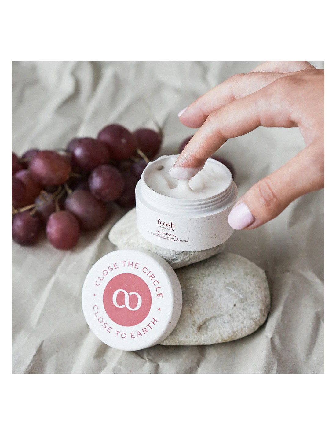 FOOSH Crema Facial Hidratante es un tratamiento facial antioxidante y well-aging formulado para hidratar en profundidad y proteger la piel frente al envejecimiento prematuro. Su base rica en extracto de brisa de uva aporta polifenoles como el resveratrol, conocidos por su potente acción antioxidante que ayuda a combatir el estrés oxidativo y mejorar la apariencia de la piel. Apta para todo tipo de pieles, incluso sensibles, proporciona nutrición, suavidad y luminosidad sin dejar sensación grasa, siendo ideal para el uso diario tanto de día como de noche.