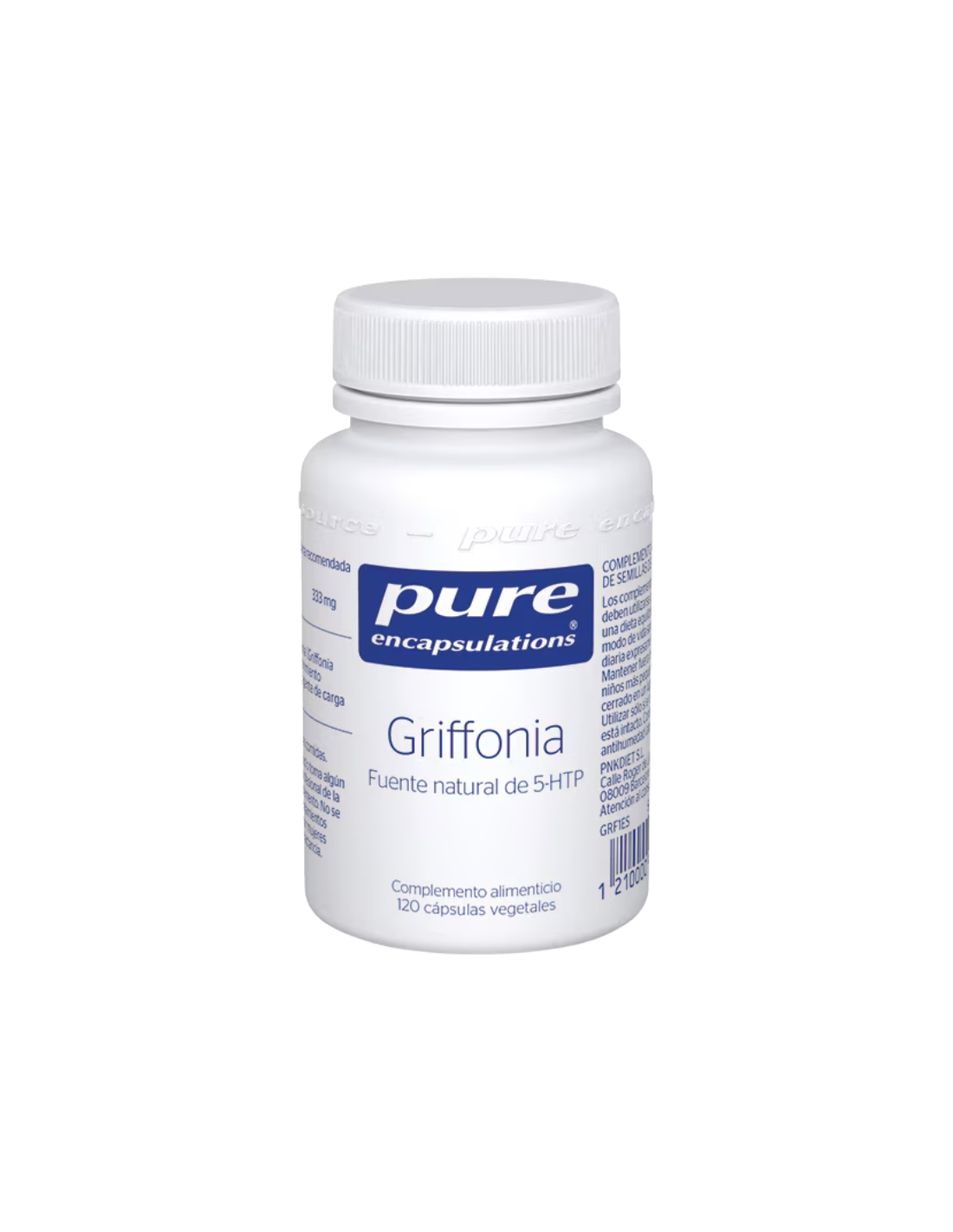 PURE ENCAPSULATIONS Griffonia Cápsulas Vegetales es un complemento alimenticio elaborado a partir de extracto de semillas de Griffonia simplicifolia, una planta reconocida por ser una de las fuentes naturales más ricas en 5-hidroxitriptófano (5-HTP). Este aminoácido es precursor directo de la serotonina, neurotransmisor clave en la regulación del estado de ánimo, el sueño y el apetito. Su fórmula aporta 100 mg de 5-HTP por dosis diaria, ayudando a favorecer el equilibrio emocional, mejorar el descanso y contribuir al bienestar general de forma natural, siendo apta para personas que buscan apoyo en momentos de estrés o alteraciones del ánimo.