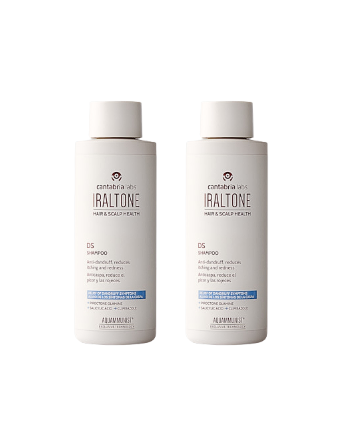 IRALTONE Duplo Champú DS es un tratamiento capilar formulado para el cuidado específico del cuero cabelludo con tendencia a la caspa y a la dermatitis seborreica. Su acción ayuda a reducir eficazmente la descamación visible, el enrojecimiento y el picor asociados a estos desequilibrios, contribuyendo a restaurar el confort cutáneo y el equilibrio fisiológico del cuero cabelludo. Gracias a su formulación dermatológica, limpia el cabello de forma suave pero eficaz, ayudando a controlar la proliferación de los factores implicados en la aparición de la caspa y previniendo su reaparición con el uso regular. El cabello queda limpio, más ligero y con una sensación de frescor duradera, siendo adecuado tanto para fases de brote como para el mantenimiento.
