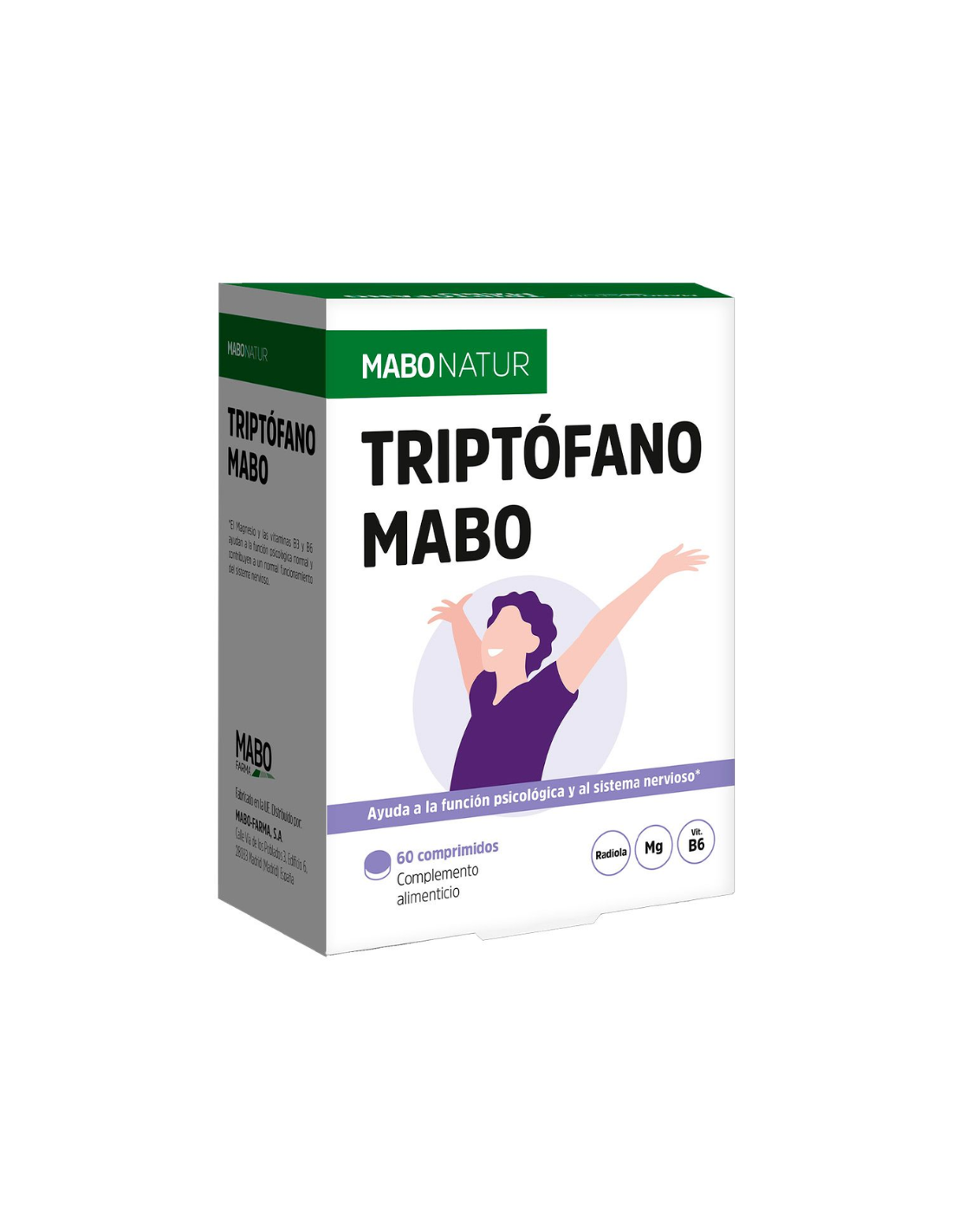 MABO Triptófano Comprimidos es un complemento alimenticio natural diseñado para apoyar la función psicológica normal y el funcionamiento del sistema nervioso, ideal para adultos que buscan reducir el estrés, mejorar la concentración y promover el equilibrio emocional en épocas de fatiga mental o tensión diaria. Formulado con L-triptófano, un aminoácido precursor de la serotonina que contribuye a la relajación y el bienestar psicológico, junto con rhodiola (radiola) adaptógena para combatir la fatiga, magnesio para el metabolismo energético y vitamina B6 para la síntesis de neurotransmisores, este suplemento ayuda a disminuir el cansancio y la irritabilidad, siendo perfecto para rutinas de salud mental y nerviosa.