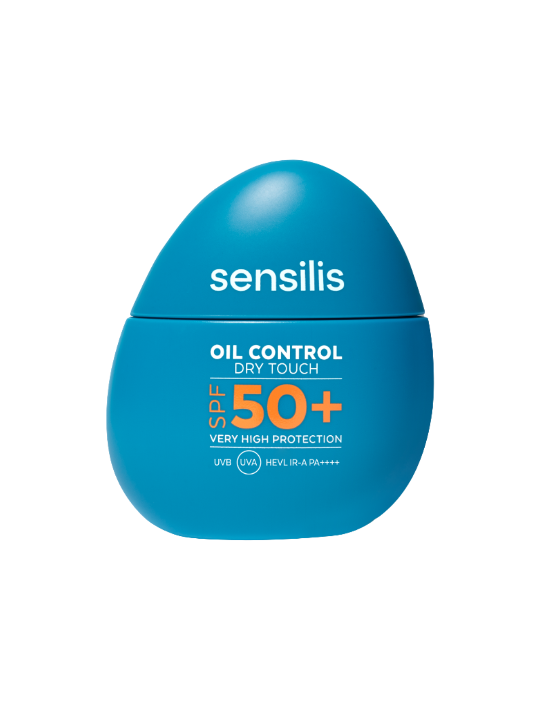 SENSILIS Oil Control Dry Touch SPF50+ es un fotoprotector facial de muy alta protección diseñado especialmente para pieles mixtas y grasas que buscan controlar el exceso de sebo sin renunciar a una protección solar completa. Su textura ultraligera de acabado seco se absorbe rápidamente, proporcionando un efecto matificante que ayuda a mantener la piel sin brillos hasta 7 horas. Ofrece protección de amplio espectro frente a radiación UVA, UVB, luz visible e infrarroja, además de acción antioxidante y antipolución. Su fórmula oil-free y no comedogénica minimiza la apariencia de poros y deja un acabado invisible y confortable, ideal para el uso diario.
