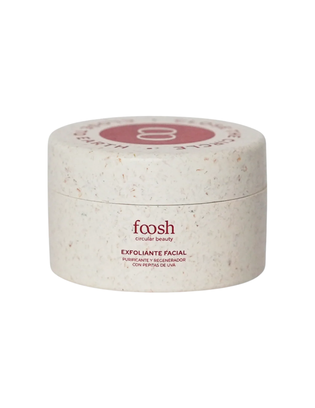 FOOSH Exfoliante Facial es un tratamiento exfoliante físico formulado con micropartículas naturales de pepita de uva que ayudan a eliminar las células muertas, limpiar los poros en profundidad y favorecer la renovación celular. Su textura cremosa permite una exfoliación suave sin irritar ni resecar la piel, siendo apto incluso para pieles sensibles. Además, su contenido en antioxidantes y extractos botánicos contribuye a purificar, tonificar y mejorar el aspecto general del rostro, dejando la piel más luminosa, suave y revitalizada.