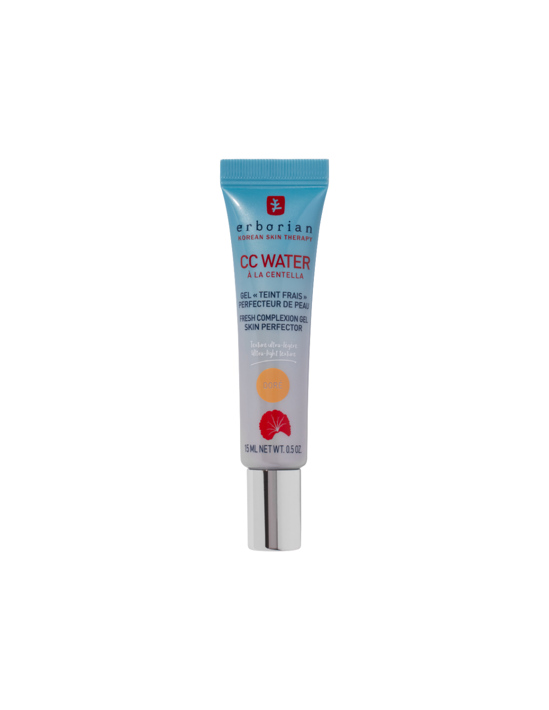 ERBORIAN CC Water Doré es un gel perfeccionador ultraligero que fusiona tratamiento y maquillaje para unificar el tono, hidratar y revitalizar la piel en un solo paso, con un efecto "buena cara" natural y refrescante. Enriquecido con Centella Asiática calmante y Ácido Hialurónico biotecnológico, ofrece hidratación jugosa inmediata, reduce las líneas por deshidratación y mejora la firmeza y la elasticidad, ideal para pieles rosadas de todos los tipos –normales, mixtas o sensibles–. Su textura fluida y no grasa se adapta al tono Doré, con pigmentos encapsulados para una luminosidad duradera y una calma instantánea. Fabricado en Corea. Integra este gel en tus rutinas diarias para una tez fresca, equilibrada y radiante, perfecto para el verano o para texturas ligeras.