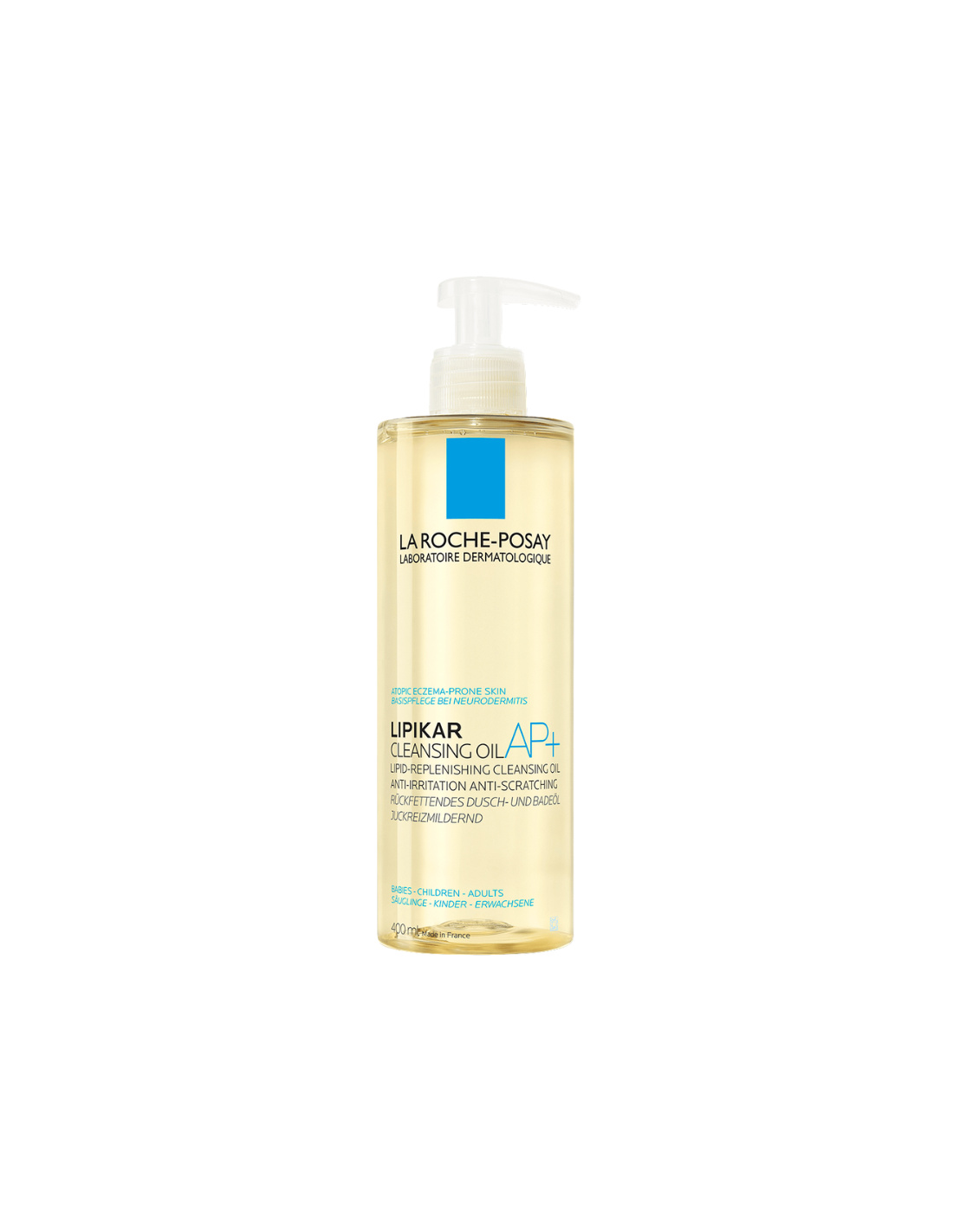 LA ROCHE-POSAY Lipikar Cleansing Oil AP+ es un aceite lavante sin jabón ni perfume especialmente formulado para pieles atópicas, muy secas, sensibles o irritadas de toda la familia. Esta fórmula innovadora limpia delicadamente sin agredir, relipida la piel, reduce la sensación de tirantez y picor post-ducha, y ayuda a prevenir las recaídas de sequedad extrema y eccema atópico. Se transforma en una leche ligera al contacto con el agua, dejando la piel limpia, suave, confortable y protegida. pH fisiológico, sin jabón, sin parabenos y testado dermatológica y pediátricamente, es ideal para rutinas de higiene diaria en pieles reactivas o con tendencia atópica, ofreciendo alivio inmediato y prevención de brotes.
