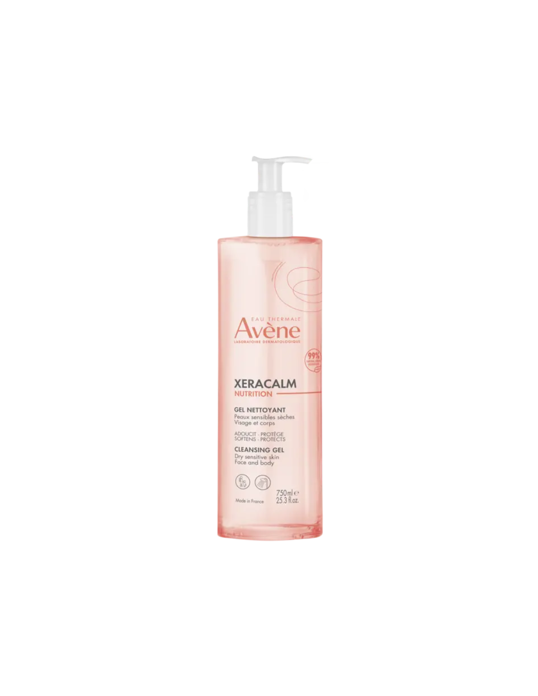 AVÈNE XeraCalm Nutrition Gel Limpiador es un gel limpiador facial y corporal especialmente formulado para pieles sensibles, secas o con tendencia a la tirantez, que limpia suavemente sin alterar la barrera cutánea. Su fórmula de alta tolerancia, con un 99 % de ingredientes de origen natural, proporciona una higiene diaria eficaz mientras nutre, calma y protege la piel. Gracias a su textura en gel sin jabón y pH fisiológico, respeta incluso las pieles más delicadas, siendo apto para toda la familia desde el nacimiento. Deja la piel limpia, suave y confortable, ayudando a prevenir la sequedad y las molestias asociadas.