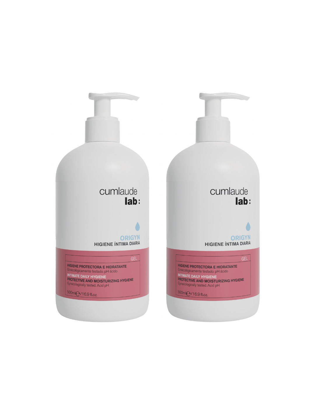 CUMLAUDE Duplo Origyn Higiene Íntima Diaria es un dúo de gel limpiador íntimo suave, especialmente formulado para la higiene diaria femenina, que limpia, protege e hidrata respetando el equilibrio natural de la zona íntima. Su fórmula sin jabón, con pH fisiológico (alrededor de 4,1), ayuda a mantener la microbiota vaginal en equilibrio, reduciendo el riesgo de irritaciones y sequedad. Enriquecido con postbióticos y extractos de plantas mediterráneas, aporta una sensación de frescura y confort duradera, siendo ideal para el uso diario en mujeres en etapa fértil y en situaciones de mayor sensibilidad.