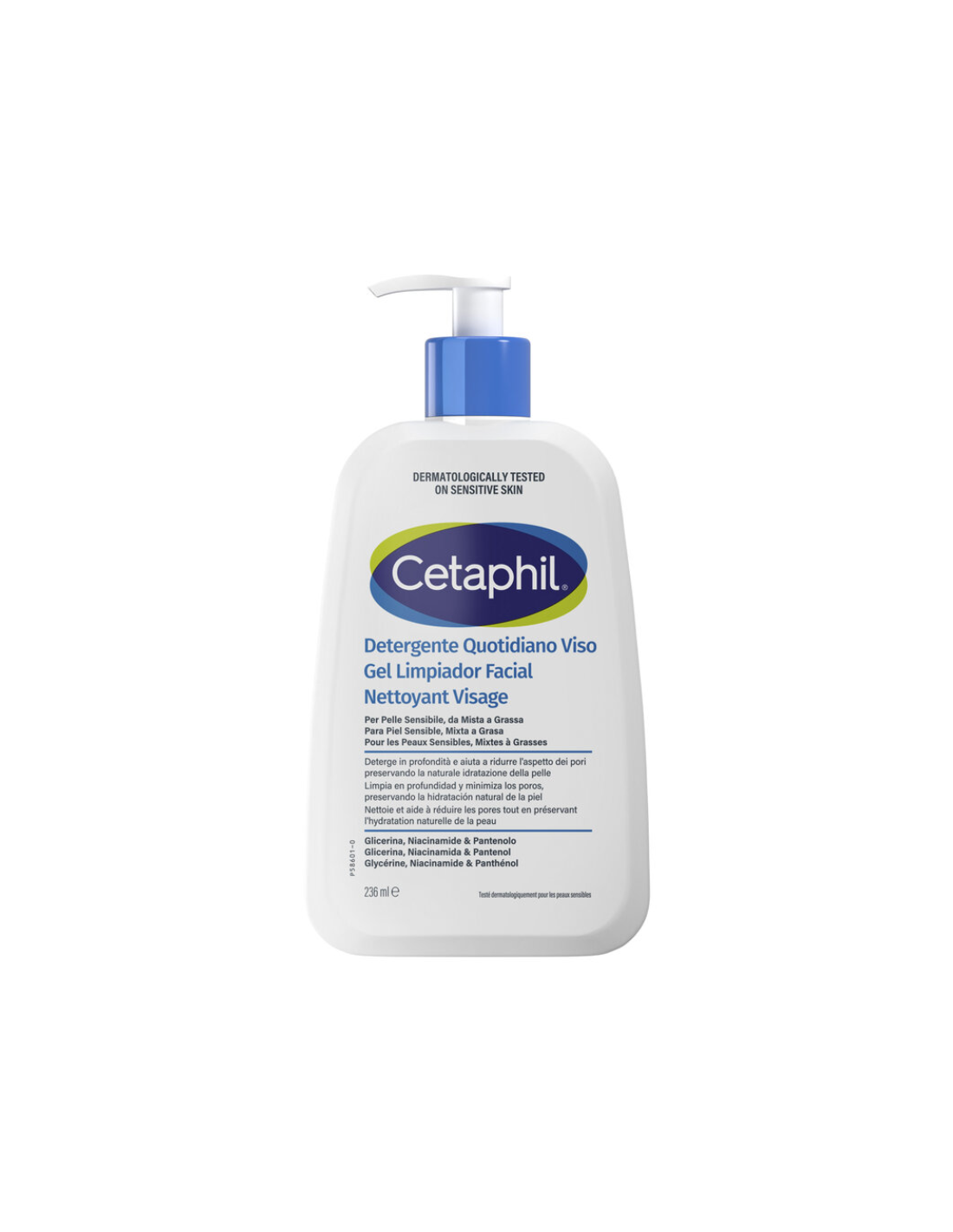 Cetaphil Gel Limpiador Facial es un gel limpiador diario sin jabón que elimina las impurezas, el exceso de sebo y el maquillaje sin alterar la barrera protectora natural de la piel. Formulado con glicerina hidratante y niacinamida calmante, limpia suavemente sin dejar sensación de tirantez, manteniendo el equilibrio hídrico y respetando la piel sensible. Ideal para pieles normales a grasas, mixtas o con tendencia acnéica, ofrece una higiene efectiva y tolerada incluso en pieles delicadas. Dermatológicamente testado, sin perfume ni ingredientes irritantes, este gel es perfecto para rutinas de limpieza matutina y nocturna que buscan pureza, confort y el máximo respeto a la piel.