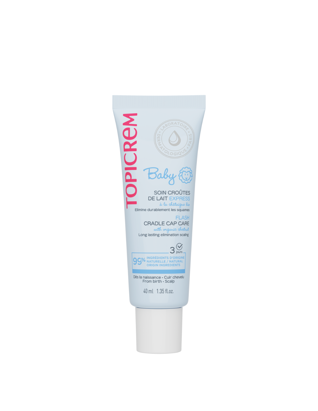 TOPICREM BABY Cuidado Costra Láctea Exprés es un tratamiento innovador en gel diseñado para eliminar de forma rápida y suave la costra láctea en el cuero cabelludo de bebés y niños pequeños. Su textura transformadora de gel a leche al contacto con el agua facilita la aplicación y el aclarado, desprendiendo delicadamente las escamas mientras calma la irritación y el picor. Formulado con ingredientes hidratantes y emolientes, este producto de alta tolerancia, testado bajo control dermatológico y pediátrico, deja el cuero cabelludo limpio, suave e hidratado en solo 15 minutos. Ideal para padres que buscan una solución eficaz y cómoda para la dermatitis seborreica infantil, este formato de 40 ml es perfecto para un cuidado exprés.