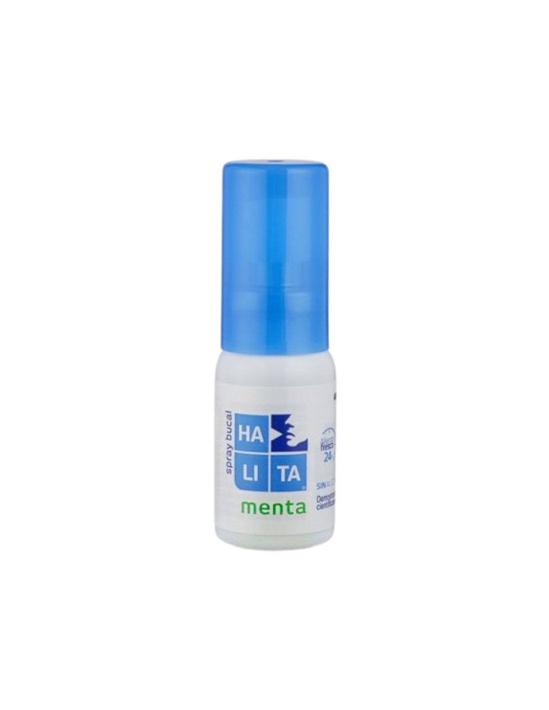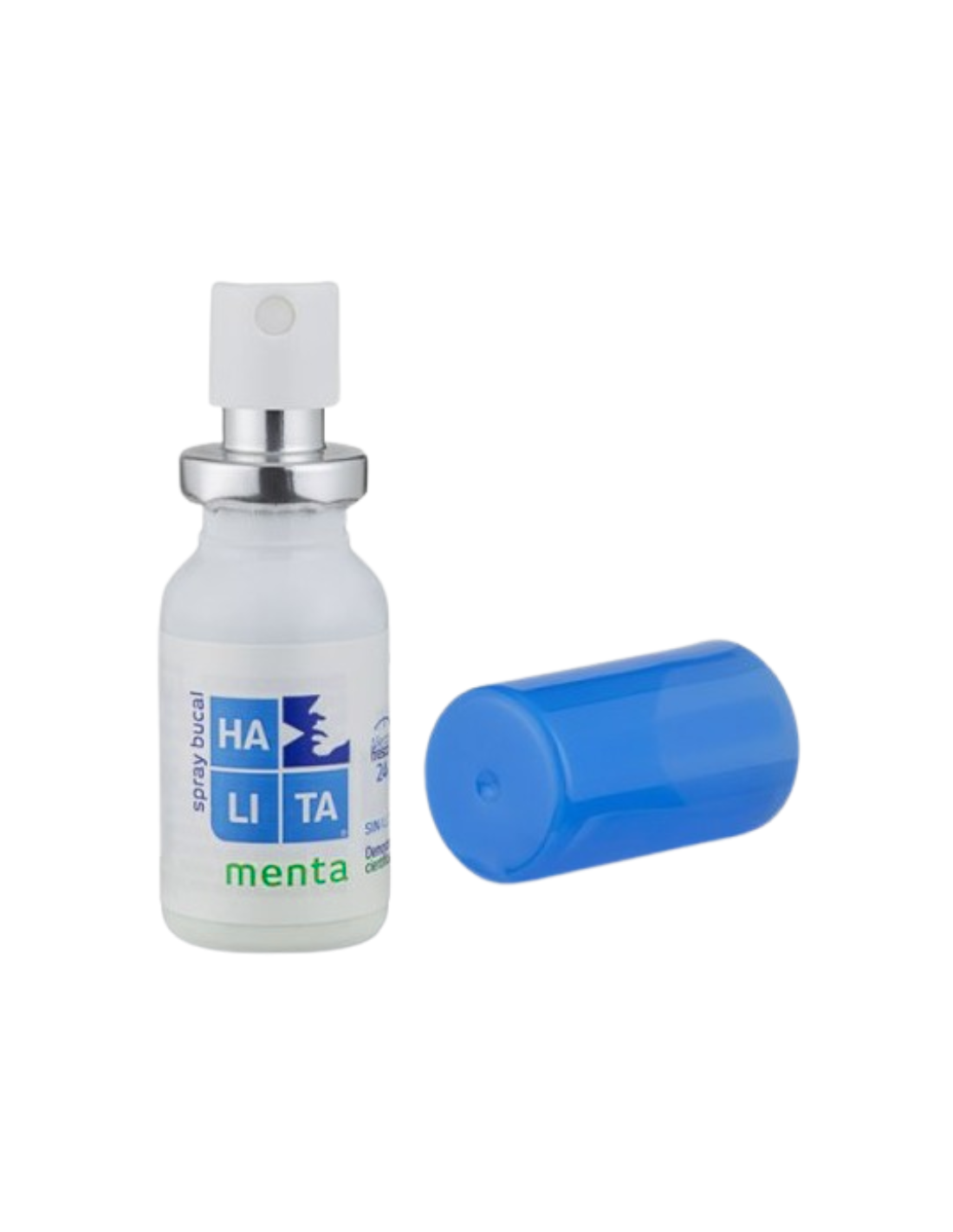 HALITA Spray Bucal Sabor Menta es un spray bucal portátil que neutraliza y elimina las sustancias malolientes responsables del mal aliento, no solo lo enmascara. Formulado con digluconato de clorhexidina, cloruro de cetilpiridinio y lactato de zinc, actúa directamente sobre las bacterias productoras de compuestos sulfurosos volátiles (CSV), ofreciendo frescor prolongado y acción antibacteriana. Ideal para halitosis crónica de origen bucal o transitoria causada por alimentos, tabaco, estrés, medicamentos o cambios hormonales, alcanza zonas difíciles como la parte posterior de la lengua y las amígdalas. Con sabor menta suave, este spray antihalitosis es el complemento perfecto para rutinas diarias fuera de casa.